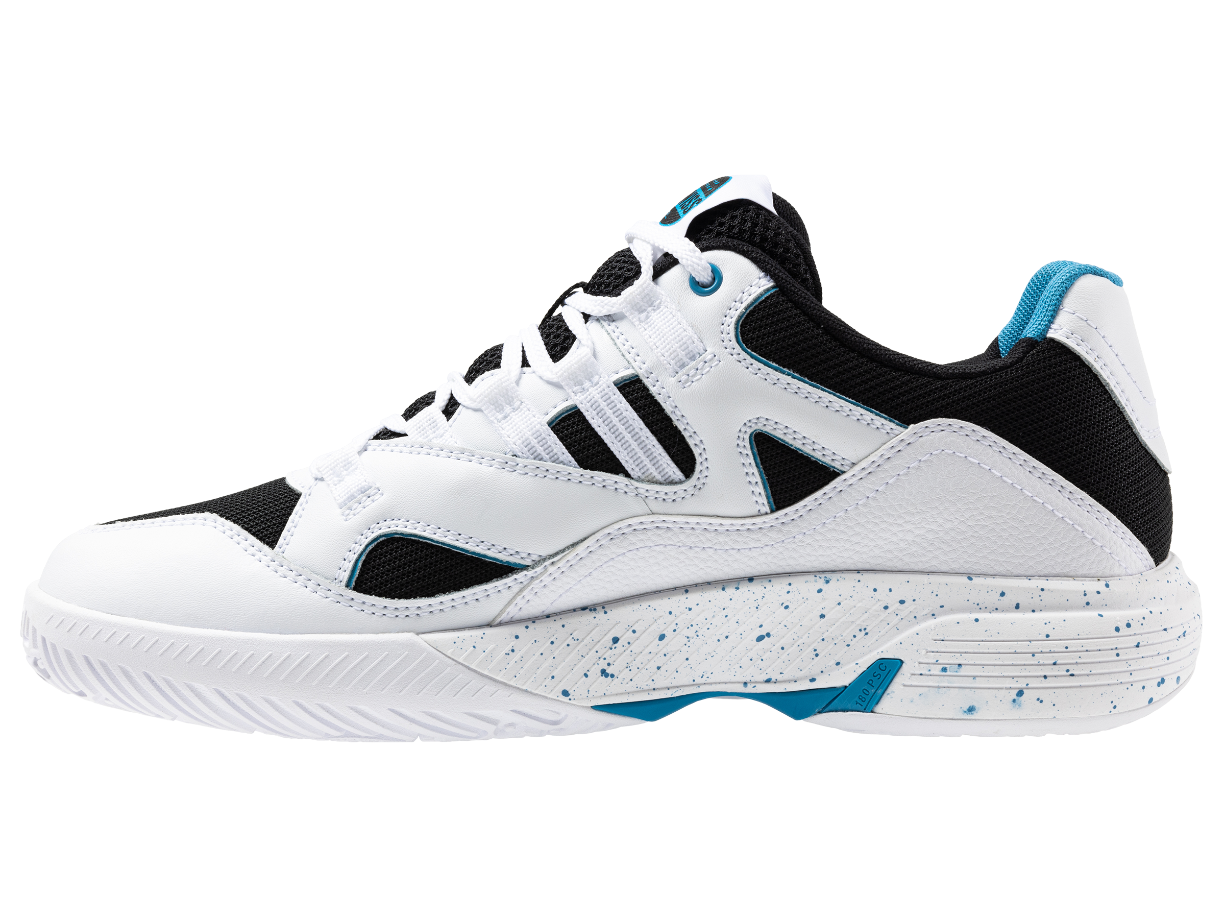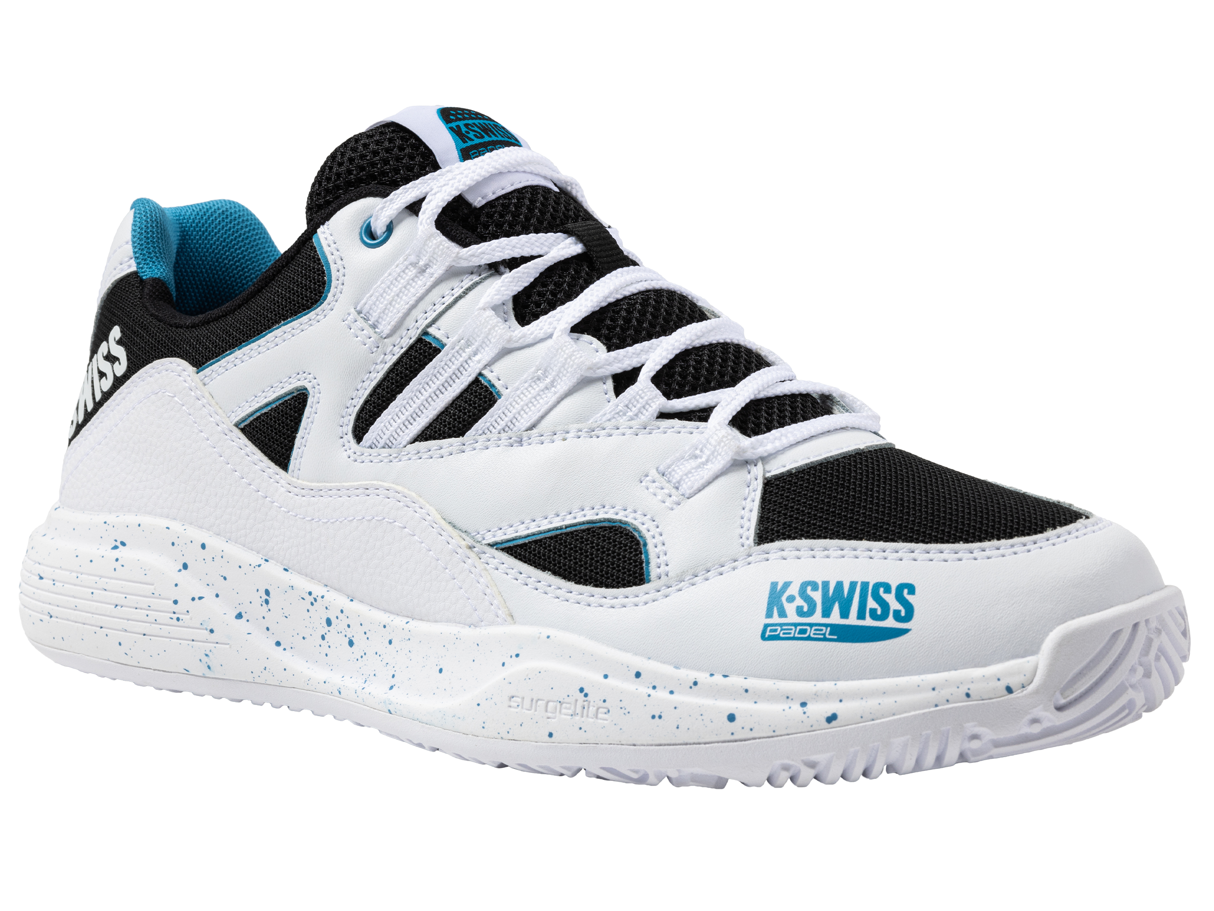 Maak kennis met de K-Swiss Tura Team Padel: een combinatie van een prestatieschoen voor op de baan en een street-stijlsneaker. De verhoogde tussenzool biedt voldoende demping