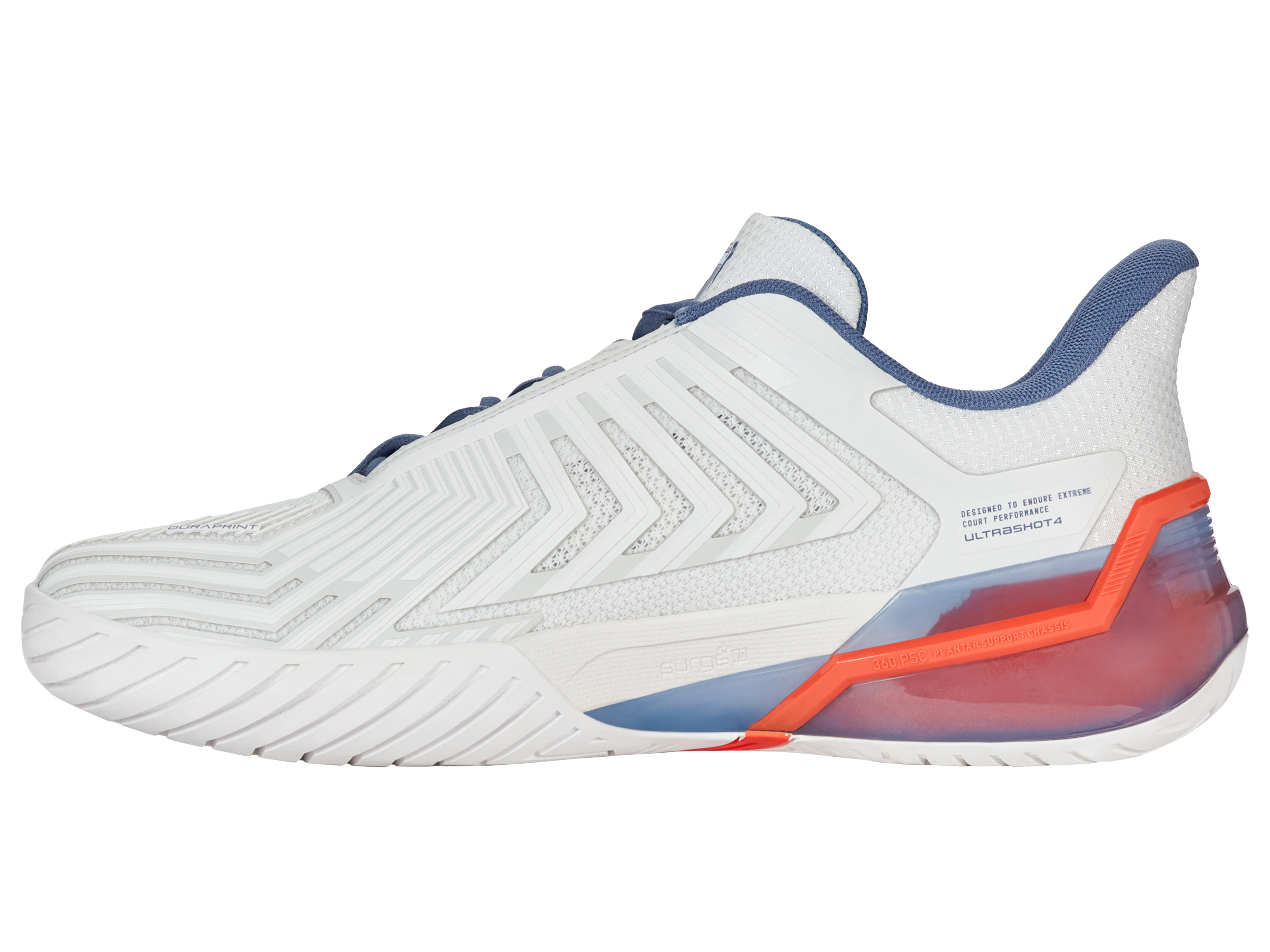 Maak kennis met de Ultrashot 4, de nieuwste evolutie van de beroemde schoen die wordt gedragen door ATP- en WTA-spelers. De Ultrashot 4 is gemaakt voor iedereen die streeft naar topprestaties op het veld en levert ongeëvenaarde energieteruggave met de Surge 7.0 tussenzooltechnologie. Ervaar onbeperkte zijwaartse beweging en stabiliteit met een aangepaste vleugel van grafiet, gecombineerd met een nieuwe buitenzool, versterkt met Aosta 7.0 die zorgt voor superieure grip, tractie en duurzaamheid.