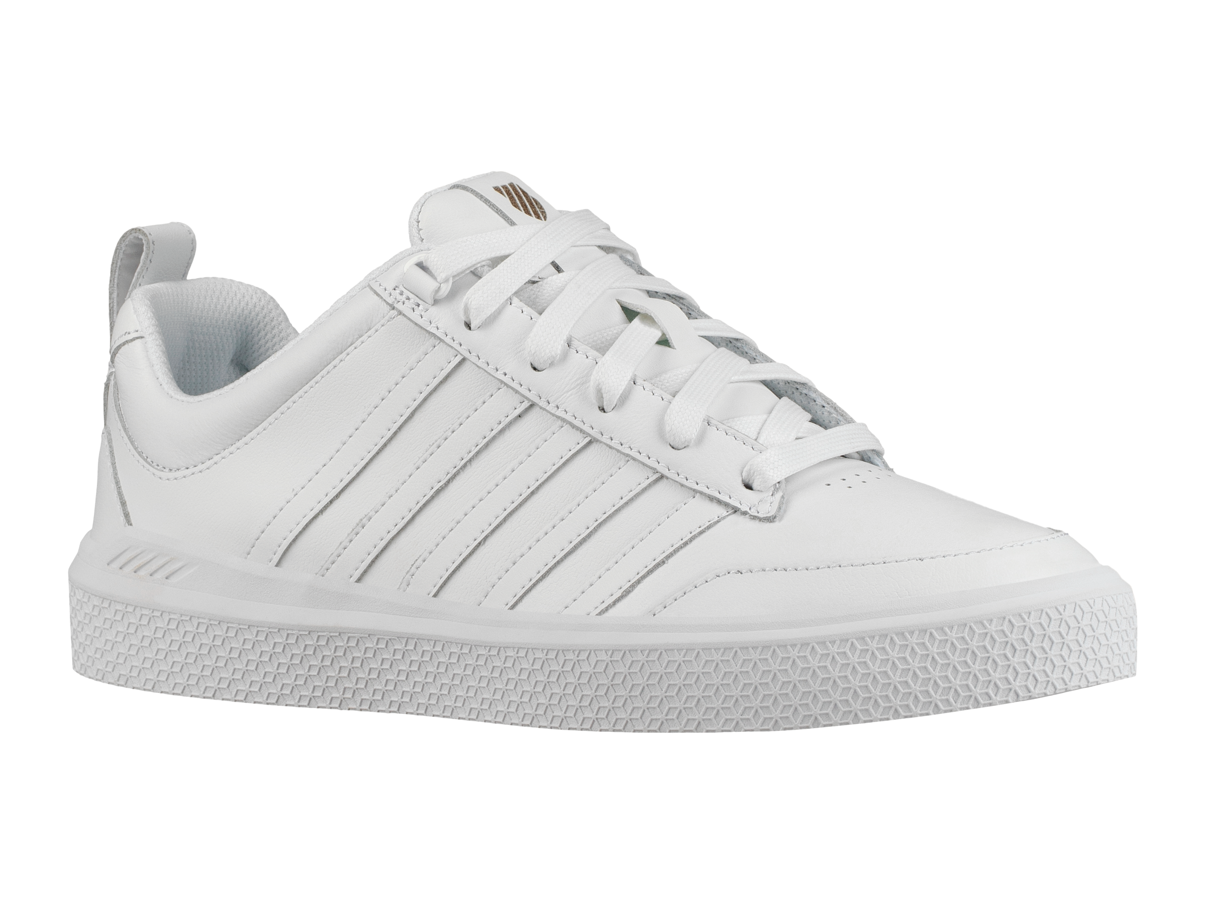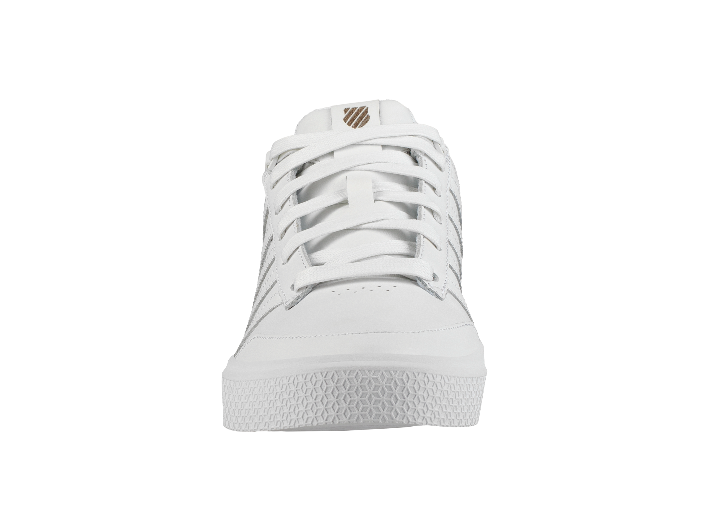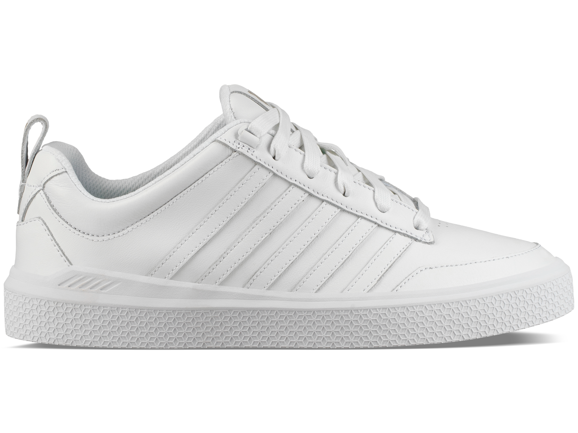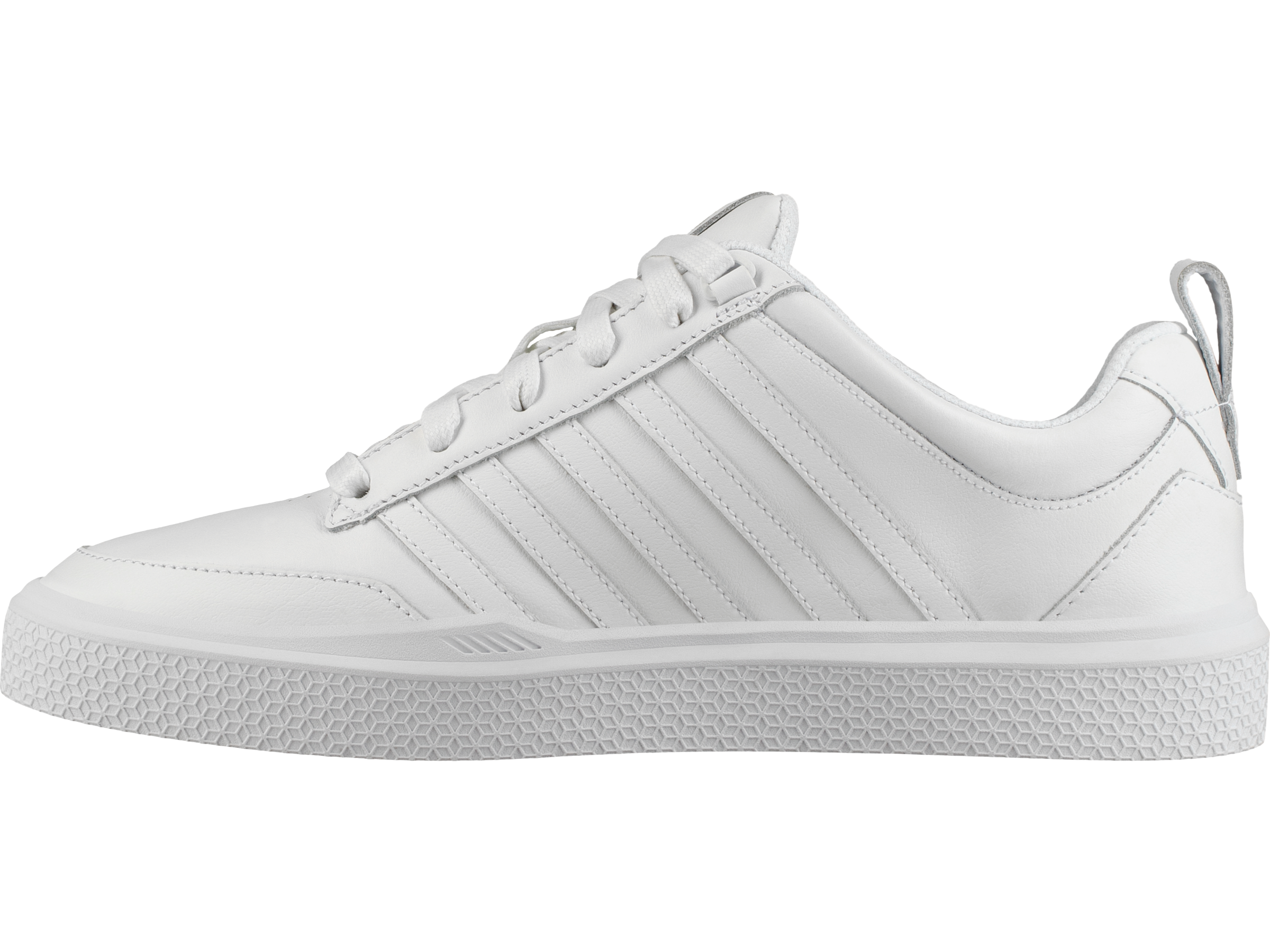 Devyn brings a modern update to classic K-Swiss court style. A clean and simple upper of premium materials features tonal 5-Stripes and laces. A perforated vamp adds breathability, and a single pair of metal D-ring nodds to the brand’s iconic tennis heritage. A molded rubber midsole with a repeating geometric pattern adds a splash of contemporary style while delivering superior tread on the outsole. Tongue and heel tabs with understated logos add to the minimalist air of this versatile low top.