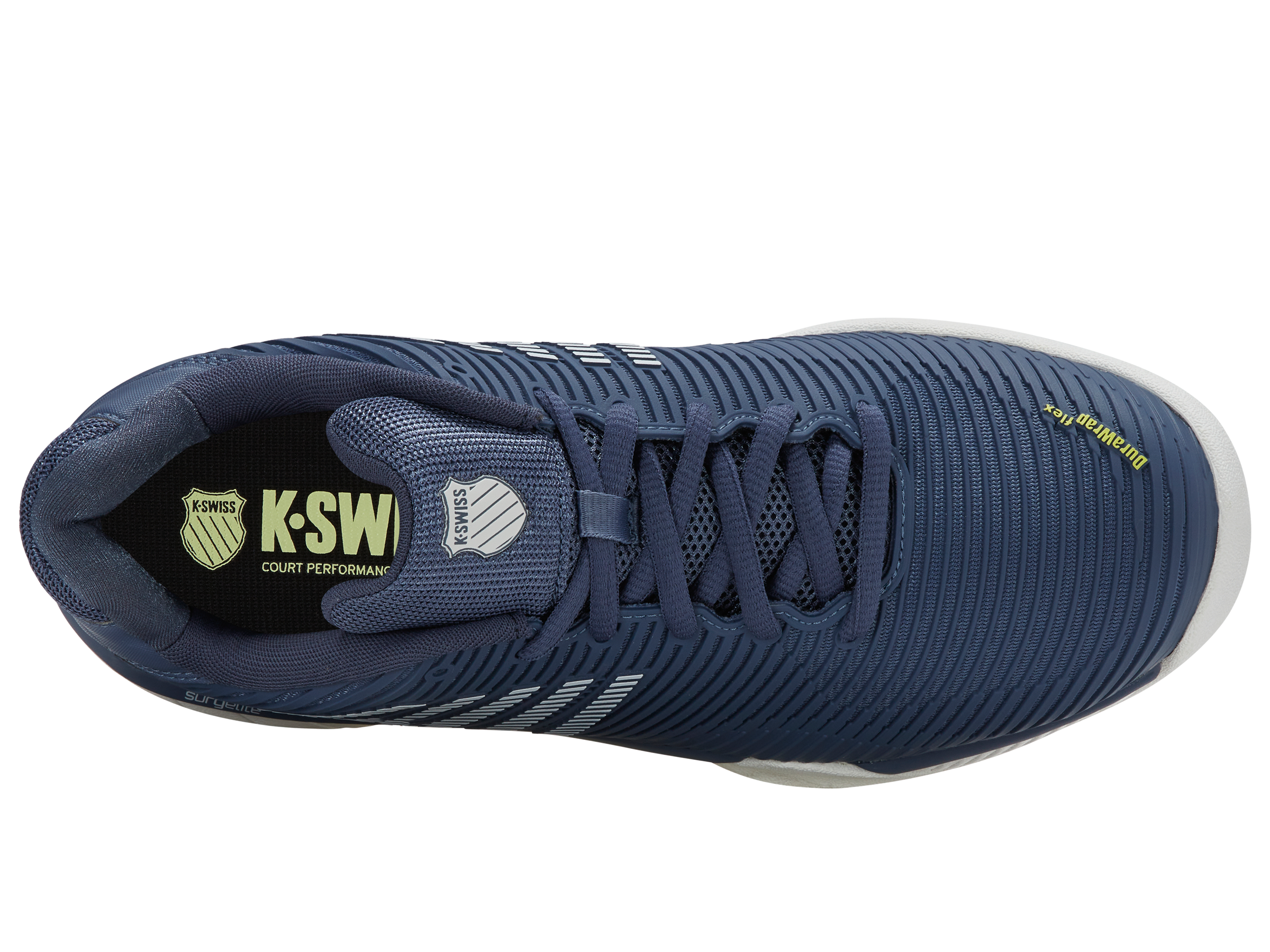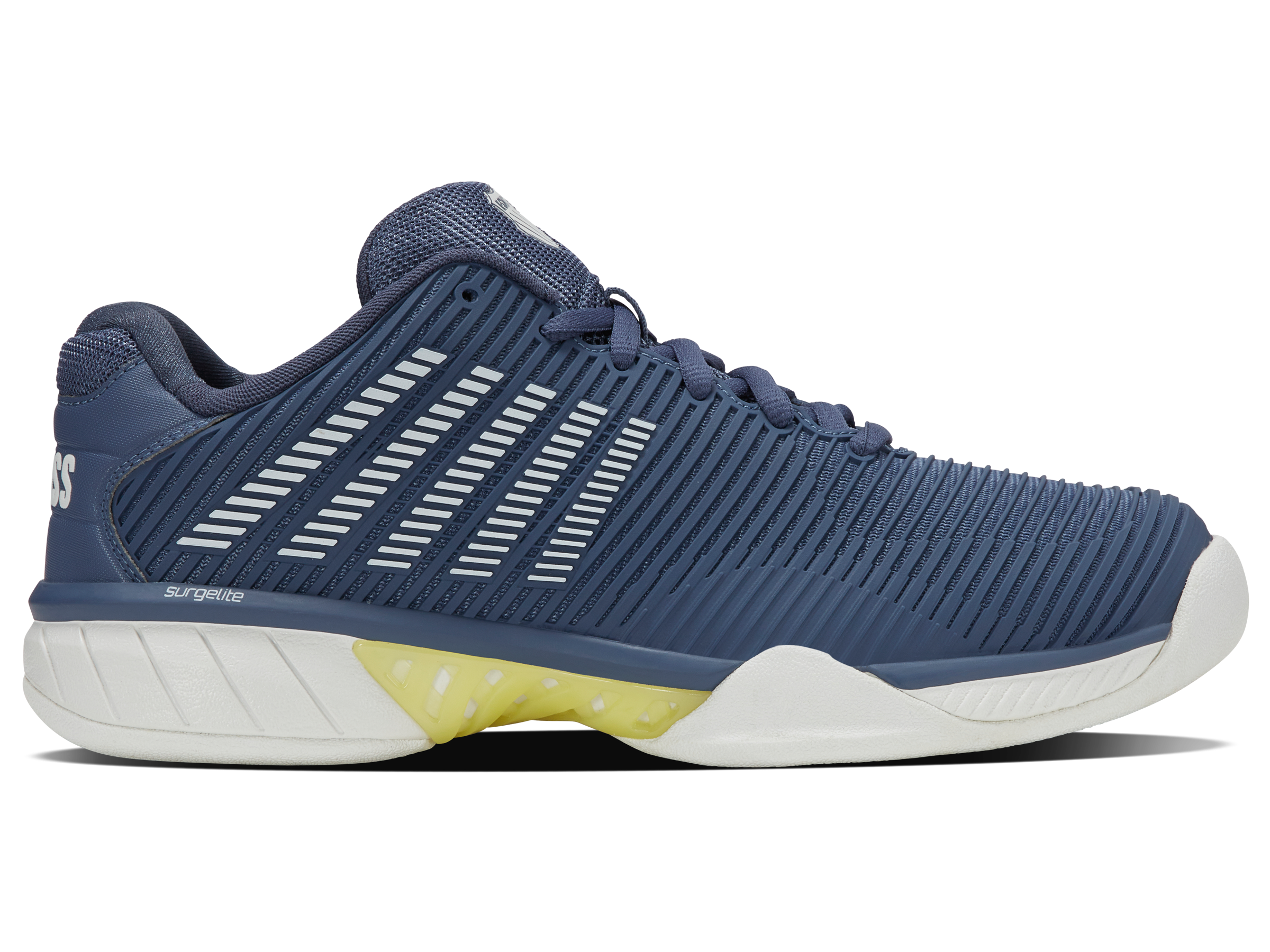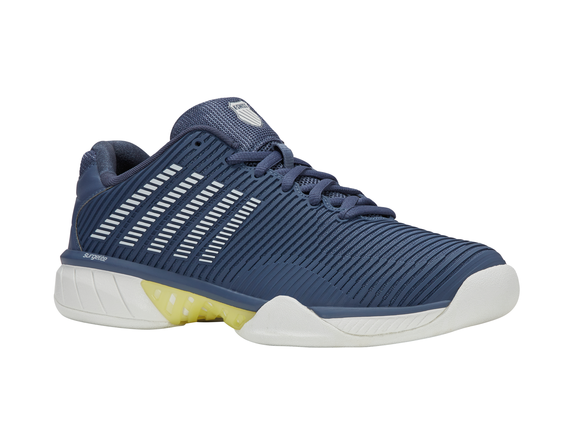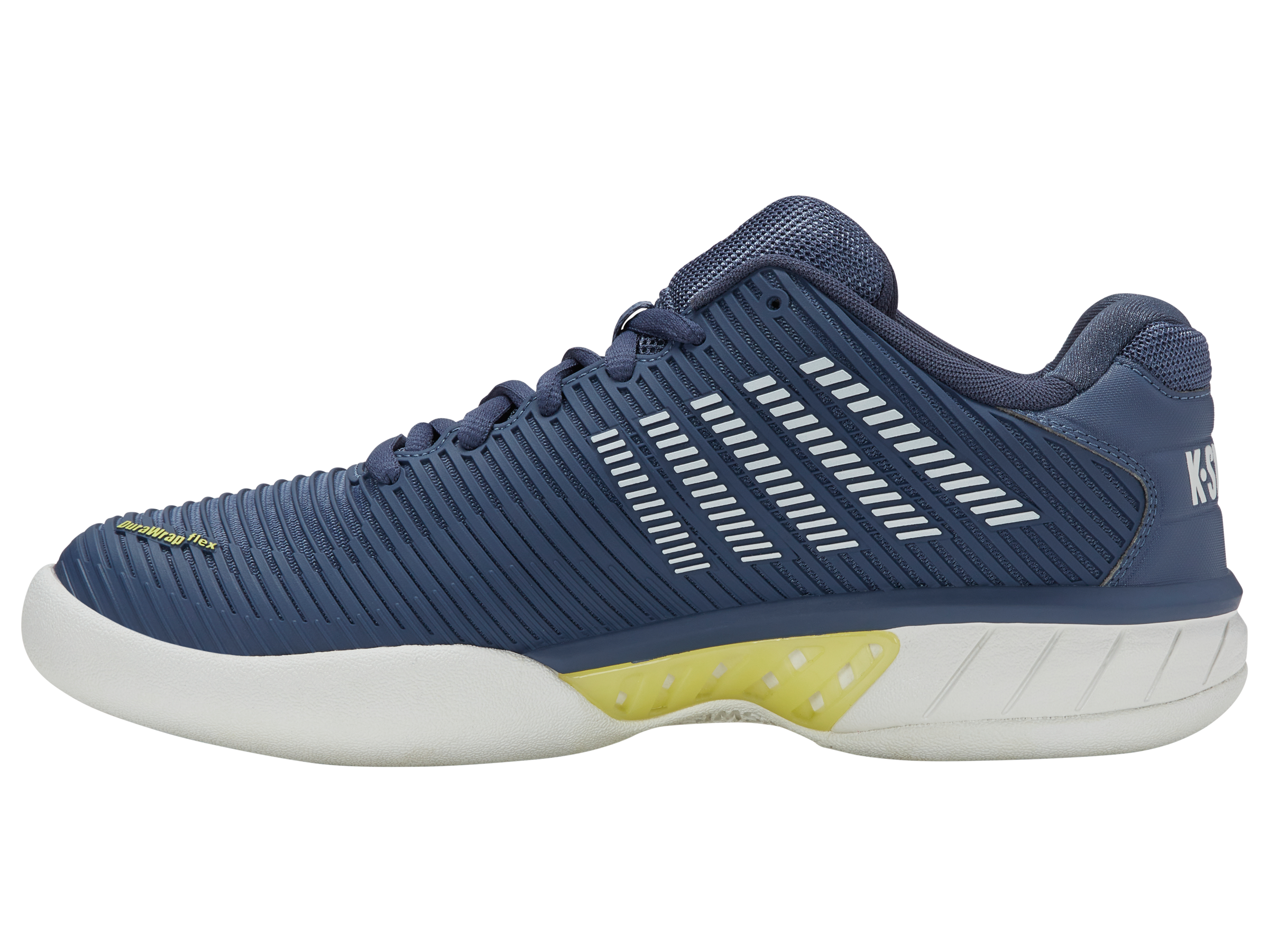 Hoe maakt K-Swiss zijn best verkochte schoenmodel nog beter? Door de toevoeging van Surgelite middenzooltechnologie wordt de Hypercourt Express 2 nog lichter en comfortabeler, terwijl hij zijn handelsmerk van ademend vermogen en ruime pasvorm behoudt. Bovendien introduceert het merk Durawrap Flex, waardoor de schoen meer ondersteuning biedt zonder inloopperiode. Het nieuwe ontwerp van het bovendeel maakt het model meteen fris en modern, wat indruk zal maken op de huidige en nieuwe tennisspelers die de schoen dragen. De schoen heeft een buitenzool die alleen geschikt is voor tapijtondergronden op indoorbanen.