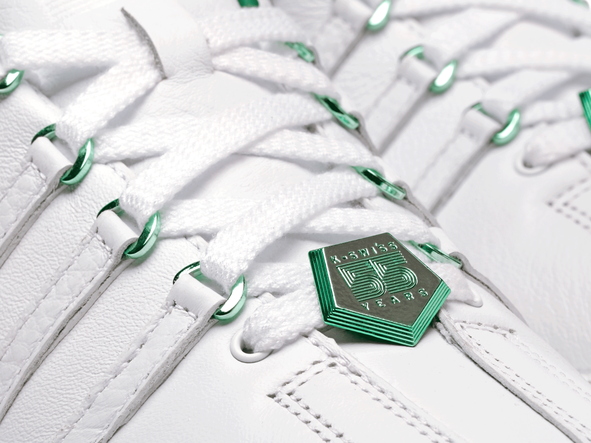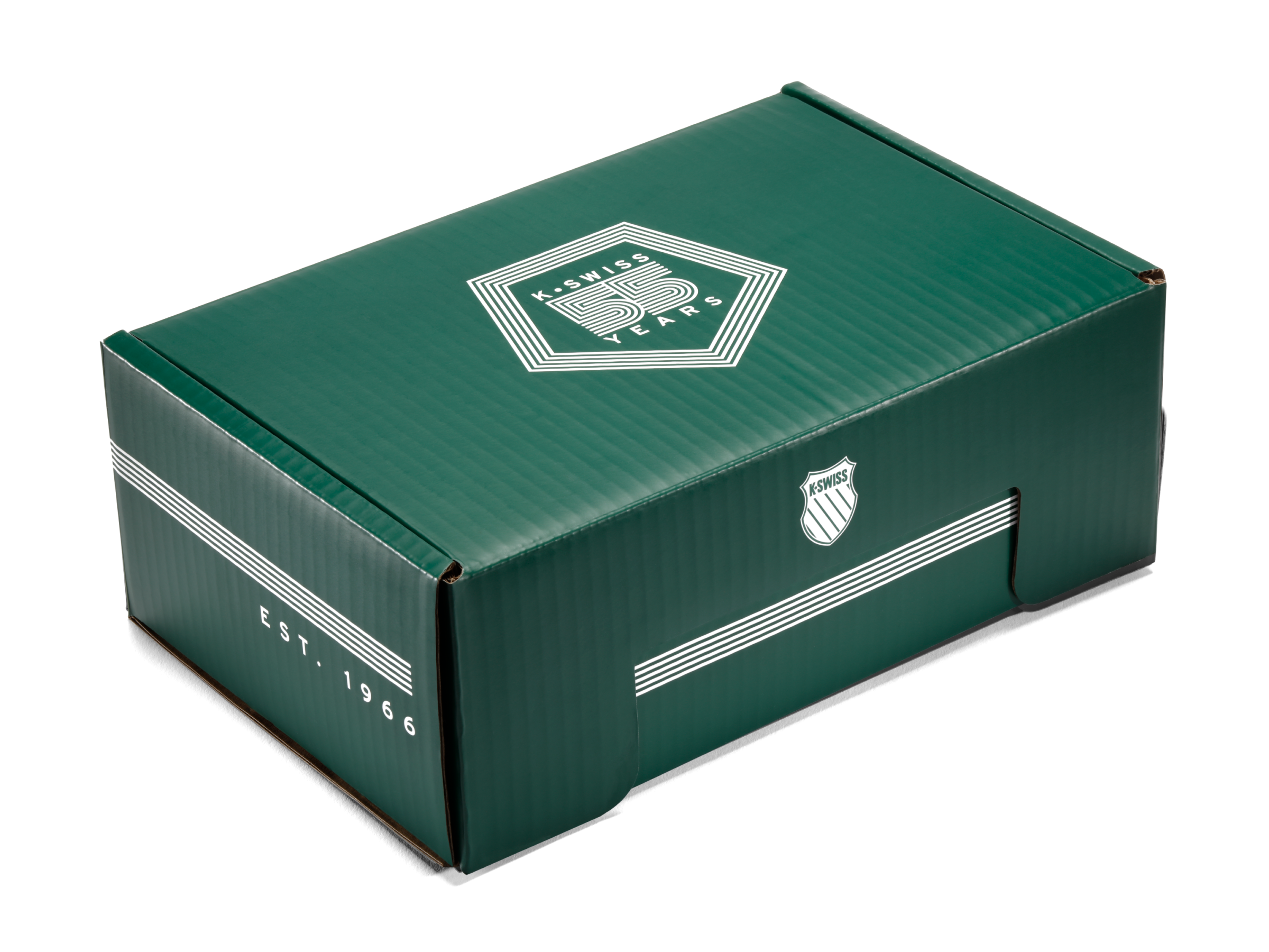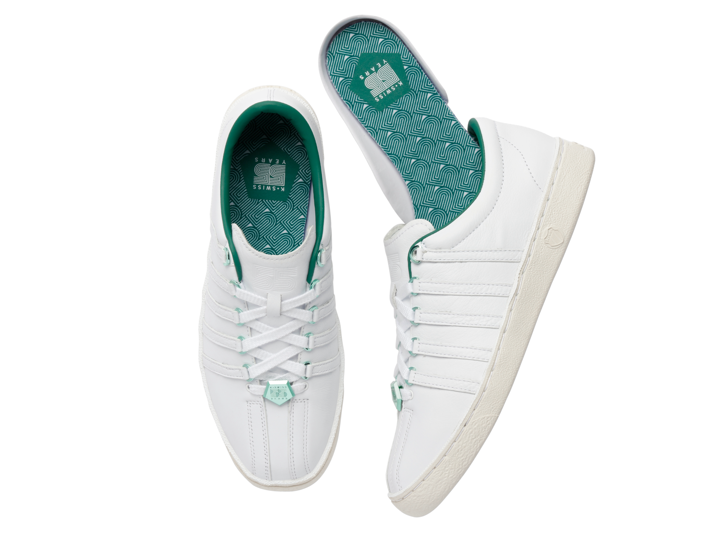 K·Swiss celebrates 55 years of on and off the court footwear making. The 55th anniversary is traditionally celebrated as an “Emerald” which becomes the key inspiration for this celebratory collection. K-Swiss was founded in 1966 when two Swiss brothers, Art and Ernie Brunner, moved to California to create a footwear brand focused on tennis. As avid skiers and tennis players, the brothers took inspiration from leather ski boots to create a court shoe that supported the aggressive side-to-side movements of tennis. The result was the K-Swiss Classic, the first all-leather tennis shoe manufactured in Los Angeles, California. The shoe utilized an innovative 5 stripe d-ring lacing system for lateral support, a unique 3 piece toe construction, and a replaceable rubber cupsole that featured herringbone brick tread for traction and durability. The K-Swiss Classic quickly gained worldwide acclaim and became a style statement both on and off the court. More than 55 years later the K-Swiss Classic is an icon of the sneaker industry and still influences the look and feel of our brand to this day. Born out of innovation, the Classic has evolved into a statement of timeless simple design, an expression of our passion for quality and craftsmanship, and an enduring symbol of our authentic tennis heritage.