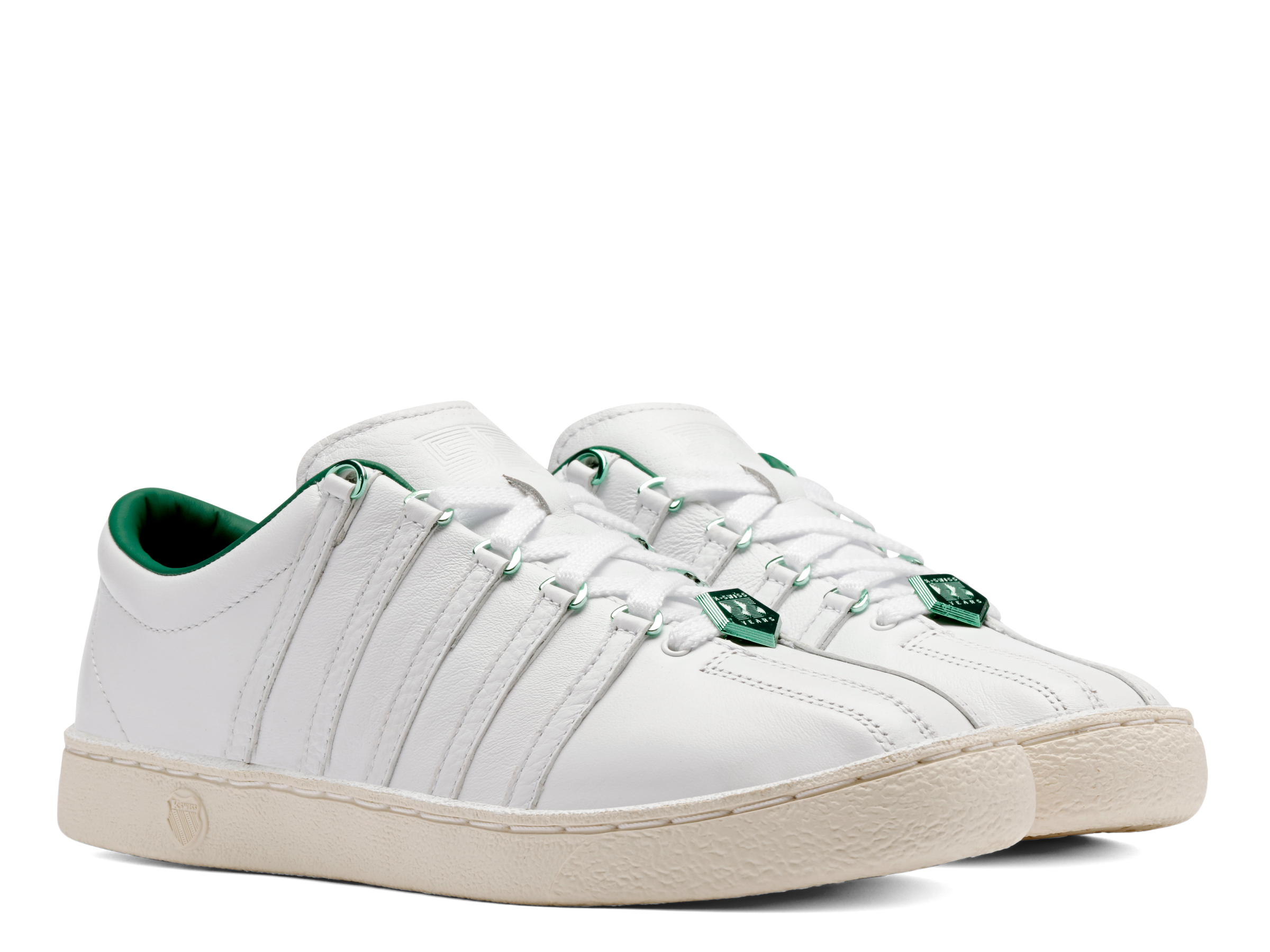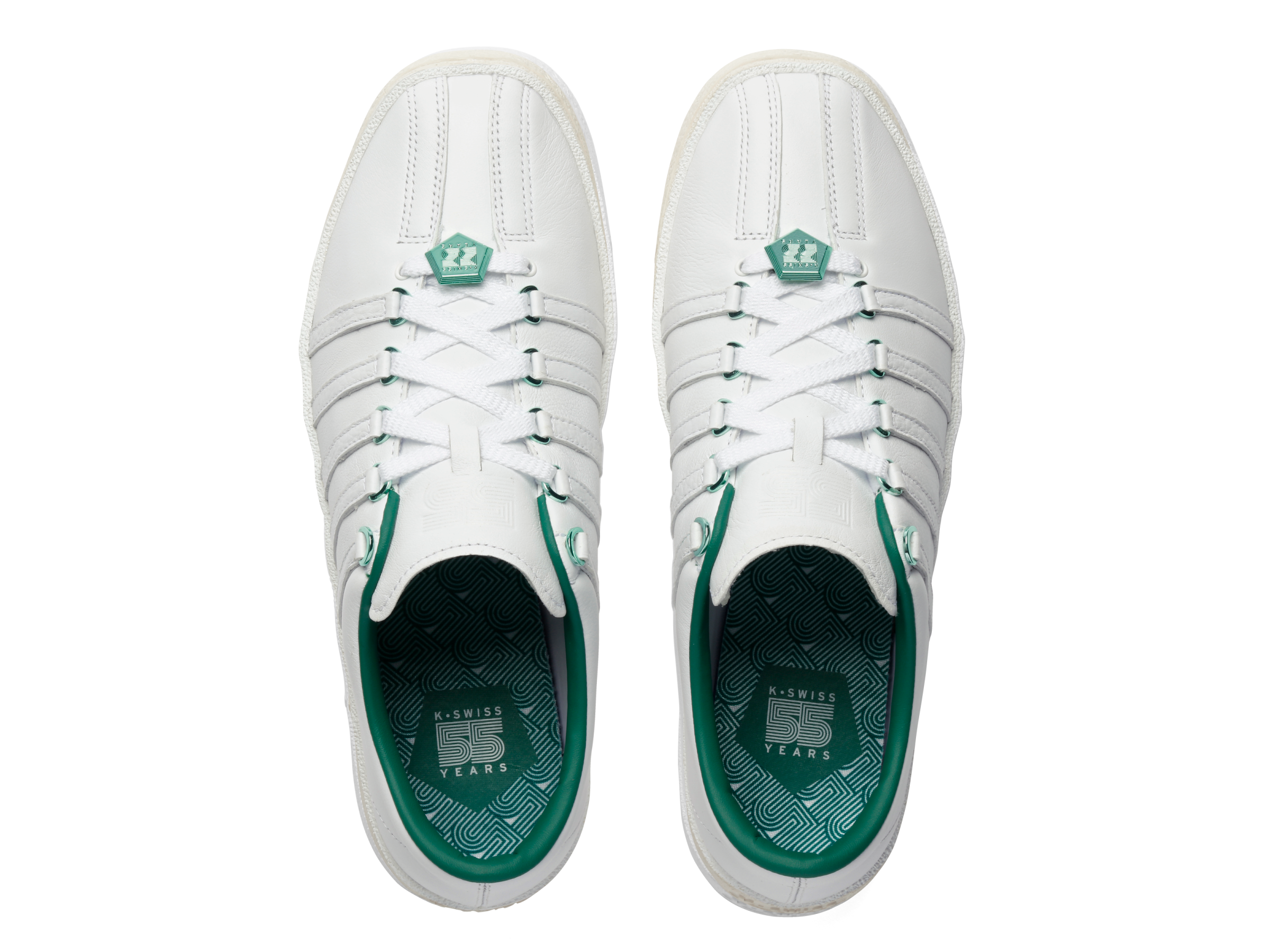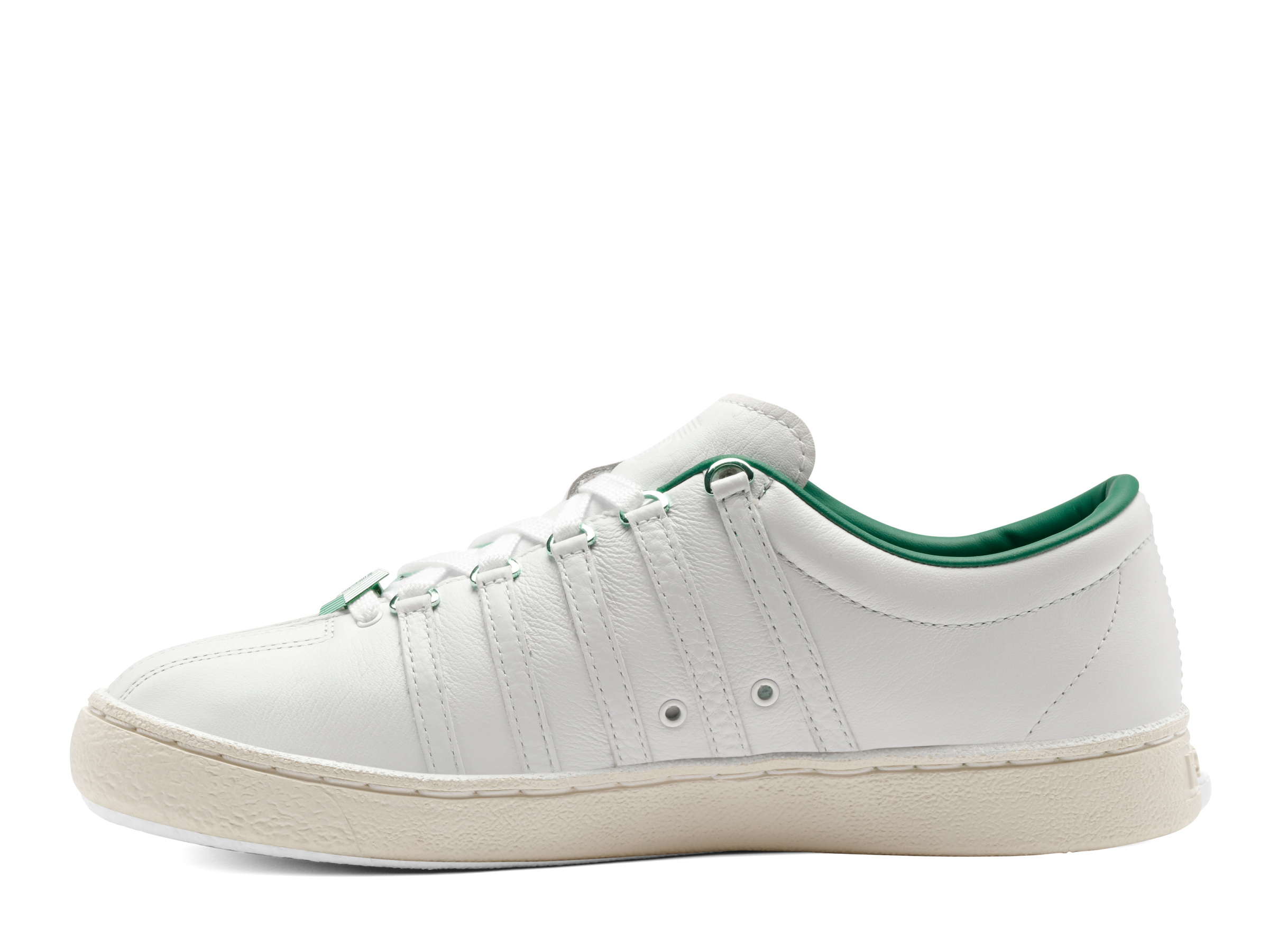 K·Swiss celebrates 55 years of on and off the court footwear making. The 55th anniversary is traditionally celebrated as an “Emerald” which becomes the key inspiration for this celebratory collection. K-Swiss was founded in 1966 when two Swiss brothers, Art and Ernie Brunner, moved to California to create a footwear brand focused on tennis. As avid skiers and tennis players, the brothers took inspiration from leather ski boots to create a court shoe that supported the aggressive side-to-side movements of tennis. The result was the K-Swiss Classic, the first all-leather tennis shoe manufactured in Los Angeles, California. The shoe utilized an innovative 5 stripe d-ring lacing system for lateral support, a unique 3 piece toe construction, and a replaceable rubber cupsole that featured herringbone brick tread for traction and durability. The K-Swiss Classic quickly gained worldwide acclaim and became a style statement both on and off the court. More than 55 years later the K-Swiss Classic is an icon of the sneaker industry and still influences the look and feel of our brand to this day. Born out of innovation, the Classic has evolved into a statement of timeless simple design, an expression of our passion for quality and craftsmanship, and an enduring symbol of our authentic tennis heritage.