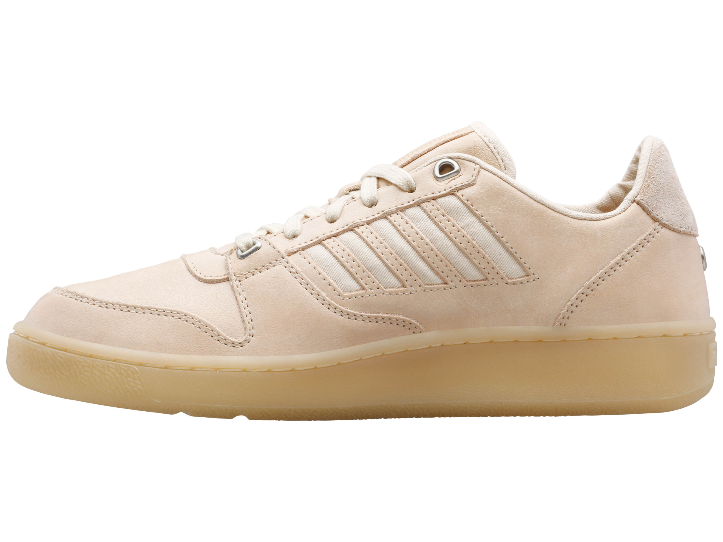 De Crown 2000 CC is een klassieke schoen in tennisstijl en in een strak, tijdloos model. De bovenlaag van eersteklas leer met textielaccenten heeft een overlay over de neus voor extra duurzaamheid. De geperforeerde 5 strepen als underlay in het middenstuk geven gestructureerde ondersteuning die toch voor extra ventilatie zorgt. Dit alles is voorzien van een genaaide en gelijmde rubberen cupzool en een EVA middenzool over de hele lengte voor lichtgewicht comfort. Een gedetailleerde afwerking met hoogwaardige metalen logo's maken de klassieke K-Swiss look en feel compleet.