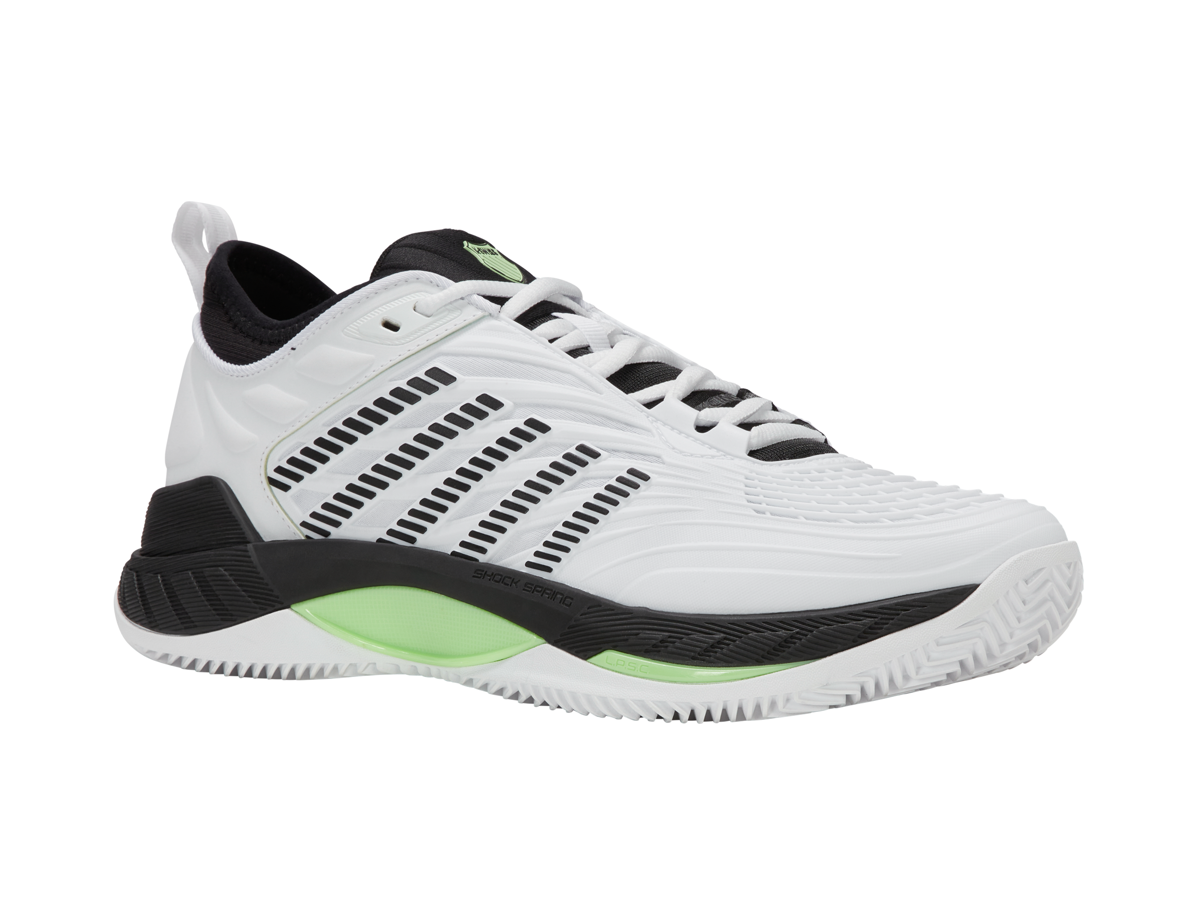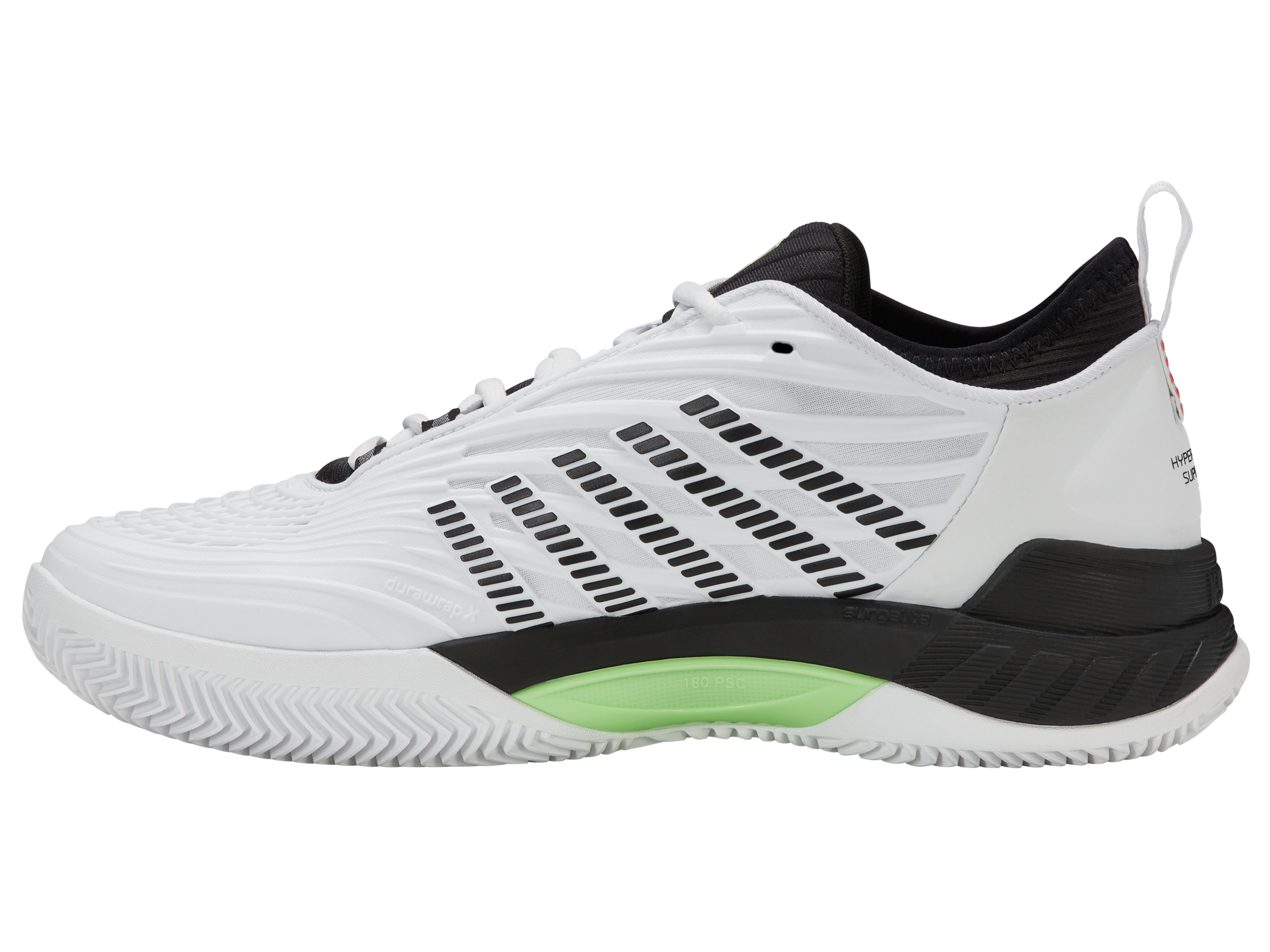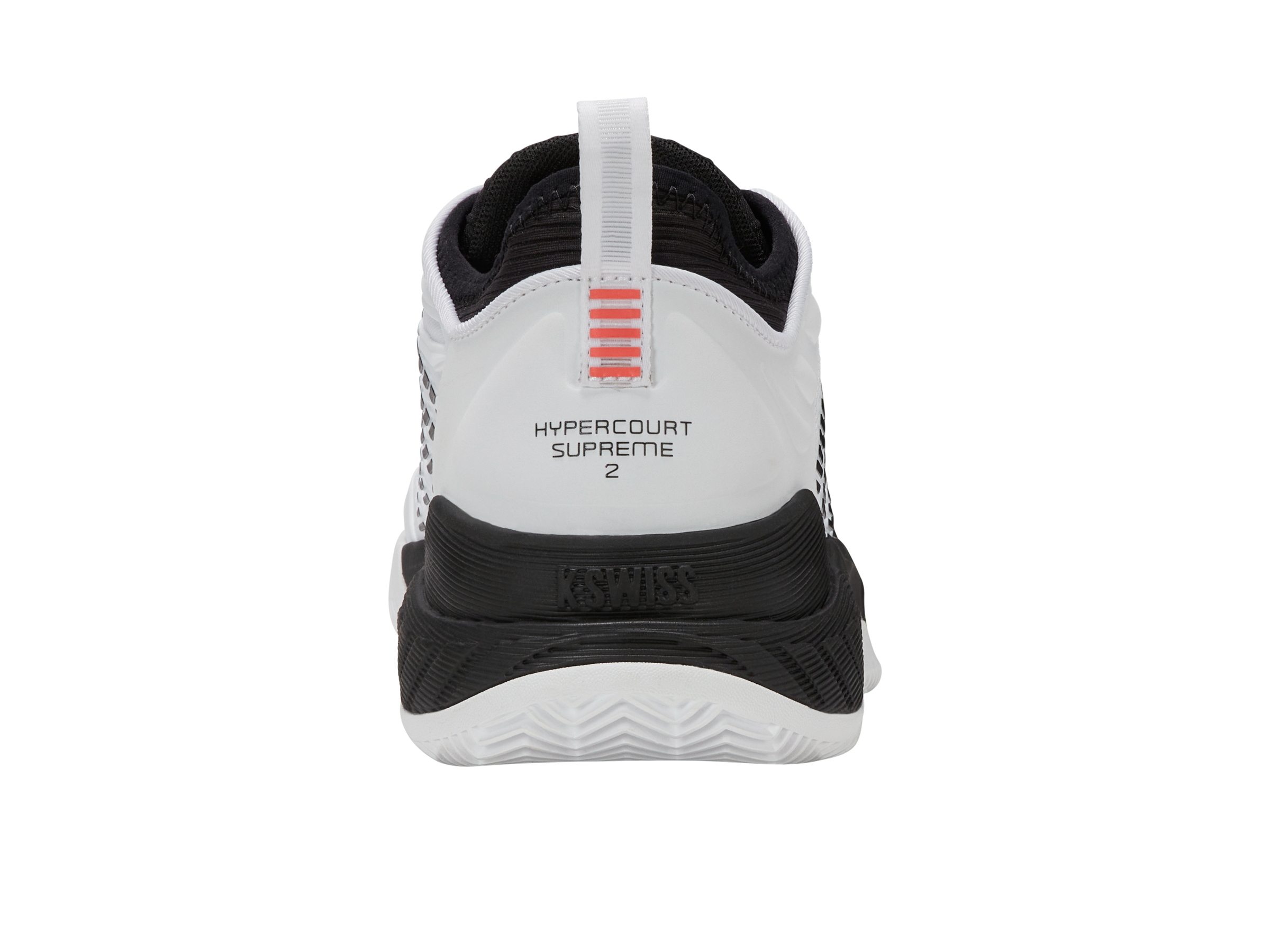 De K-SWISS Hypercourt Supreme 2 HB is het topmodel binnen de Hyper-familie. Dit jaar introduceren we een nieuwe versie met een nog betere pasvorm, extra ondersteuning en duurzaamheid met een optimaal comfort. Het bovenwerk is gemaakt van Durawrap X voor een uitstekende ondersteuning en bescherming tegen slijtage met behoud van flexibiliteit terwijl u zich over de baan verplaatst. De tussenzool met dubbele dichtheid heeft een extern, lichtgewicht Surgelite schuim voor maximaal comfort en ondersteuning. Het hoge rebound Shock Spring binnenschuim op de voorvoet garandeert een snellere reactie bij elke stap. De Dragguard 7.0 rubberen HB buitenzool met visgraatprofiel biedt een uitstekende balans tussen grip en glijden op gravelbanen. De nieuw ontworpen zachte kraag biedt een betere pasvorm rond de enkel.