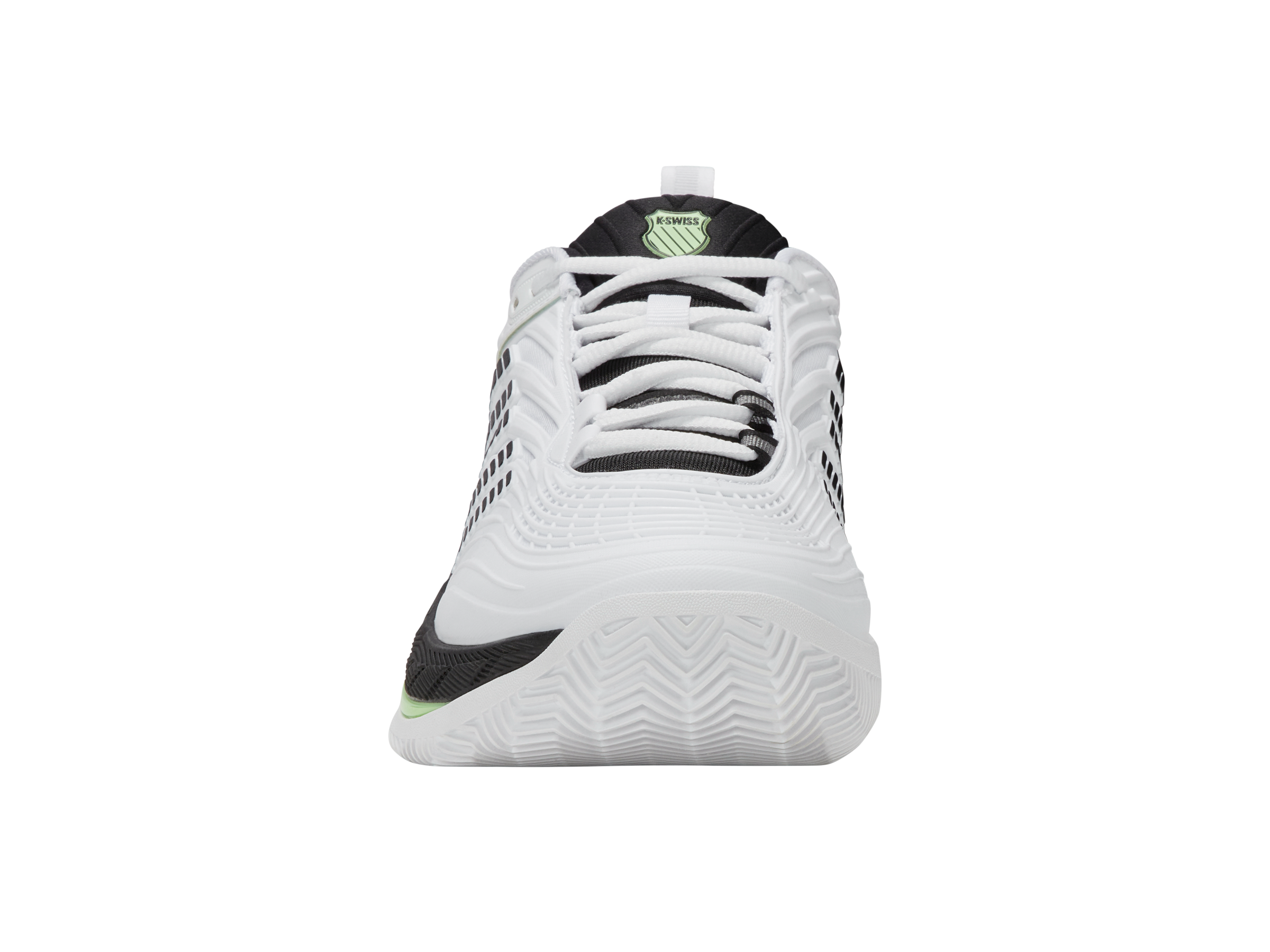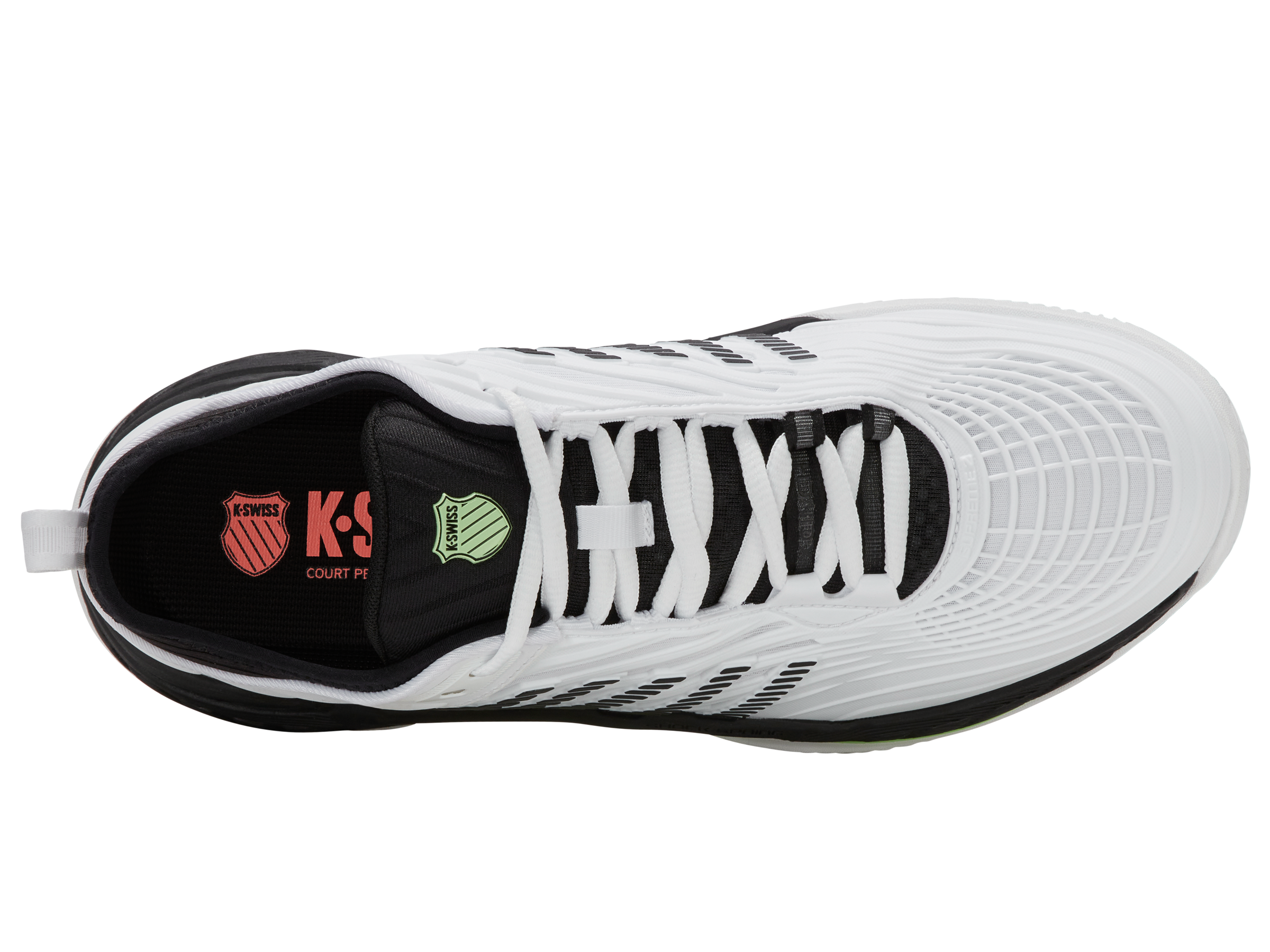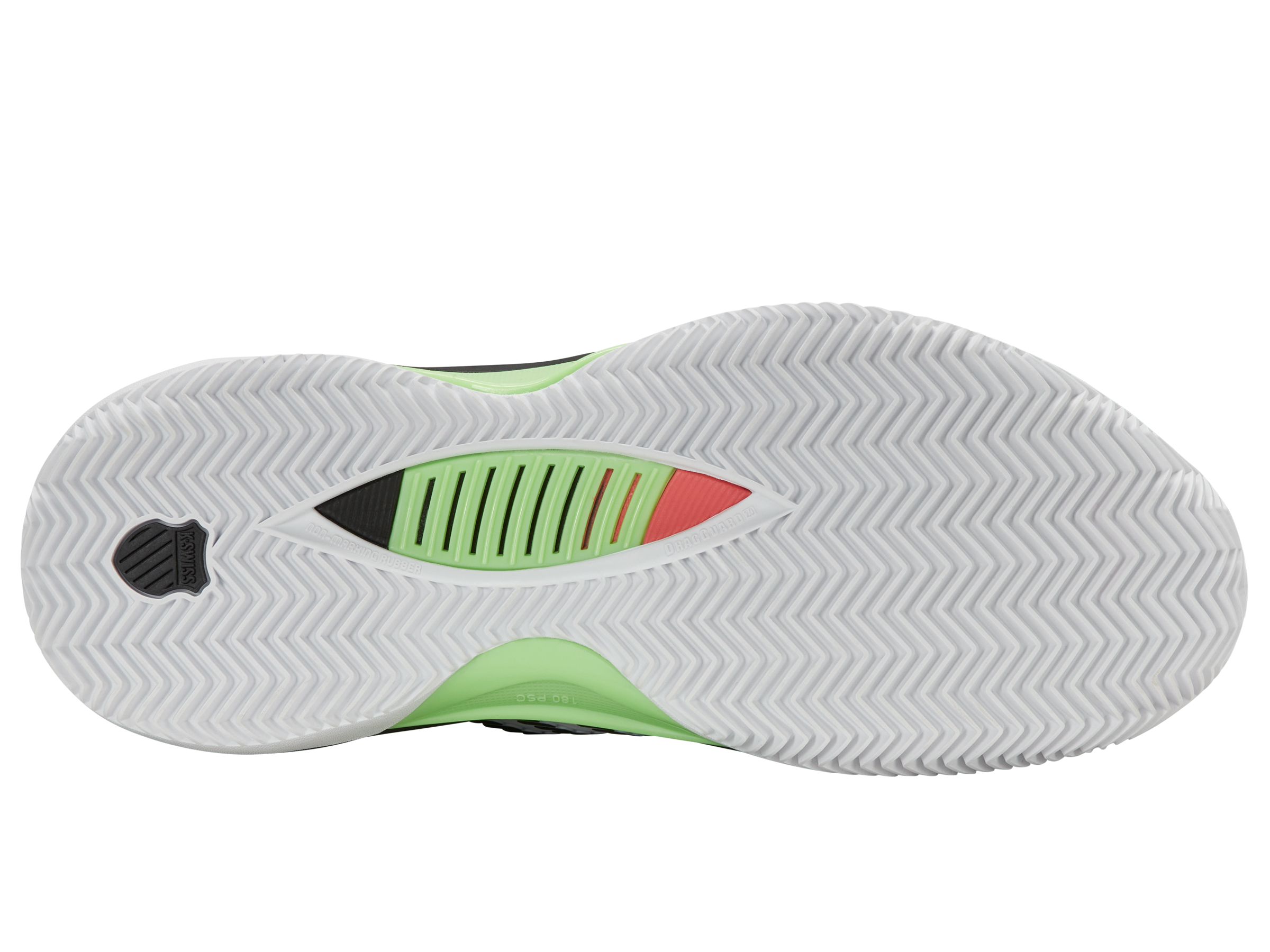 De K-SWISS Hypercourt Supreme 2 HB is het topmodel binnen de Hyper-familie. Dit jaar introduceren we een nieuwe versie met een nog betere pasvorm, extra ondersteuning en duurzaamheid met een optimaal comfort. Het bovenwerk is gemaakt van Durawrap X voor een uitstekende ondersteuning en bescherming tegen slijtage met behoud van flexibiliteit terwijl u zich over de baan verplaatst. De tussenzool met dubbele dichtheid heeft een extern, lichtgewicht Surgelite schuim voor maximaal comfort en ondersteuning. Het hoge rebound Shock Spring binnenschuim op de voorvoet garandeert een snellere reactie bij elke stap. De Dragguard 7.0 rubberen HB buitenzool met visgraatprofiel biedt een uitstekende balans tussen grip en glijden op gravelbanen. De nieuw ontworpen zachte kraag biedt een betere pasvorm rond de enkel.