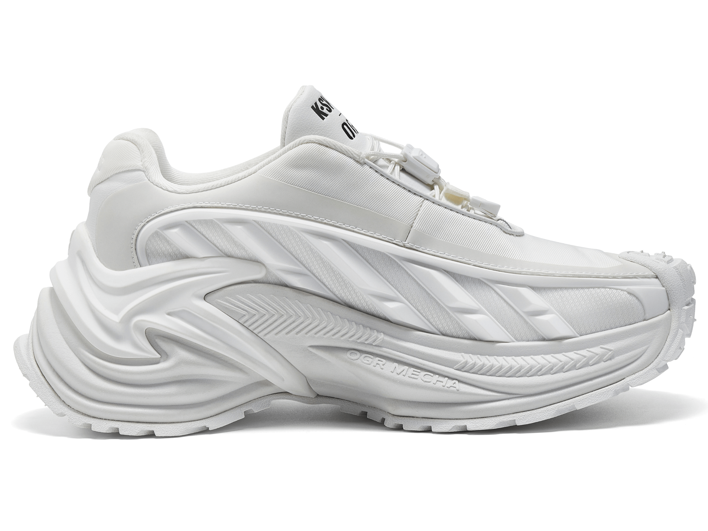 Step into the future with the limited-edition K-Swiss x OGR : Rattlesnake, an exceptional blend of futuristic design and trendsetting style. Designed to elevate your fashion game, this sneaker features an advanced 3D printing parametric aesthetic and a convenient spring-lock mechanism for ultimate ease. Blending K-SWISS’s classic designs with OGR’s unique industrial aesthetics, this series features cutting-edge structural lines and functional performance, making it a must-have for fashion-forward individuals. Available in sleek black and pure white, its durable anti-slip outsole ensures comfort and support.
