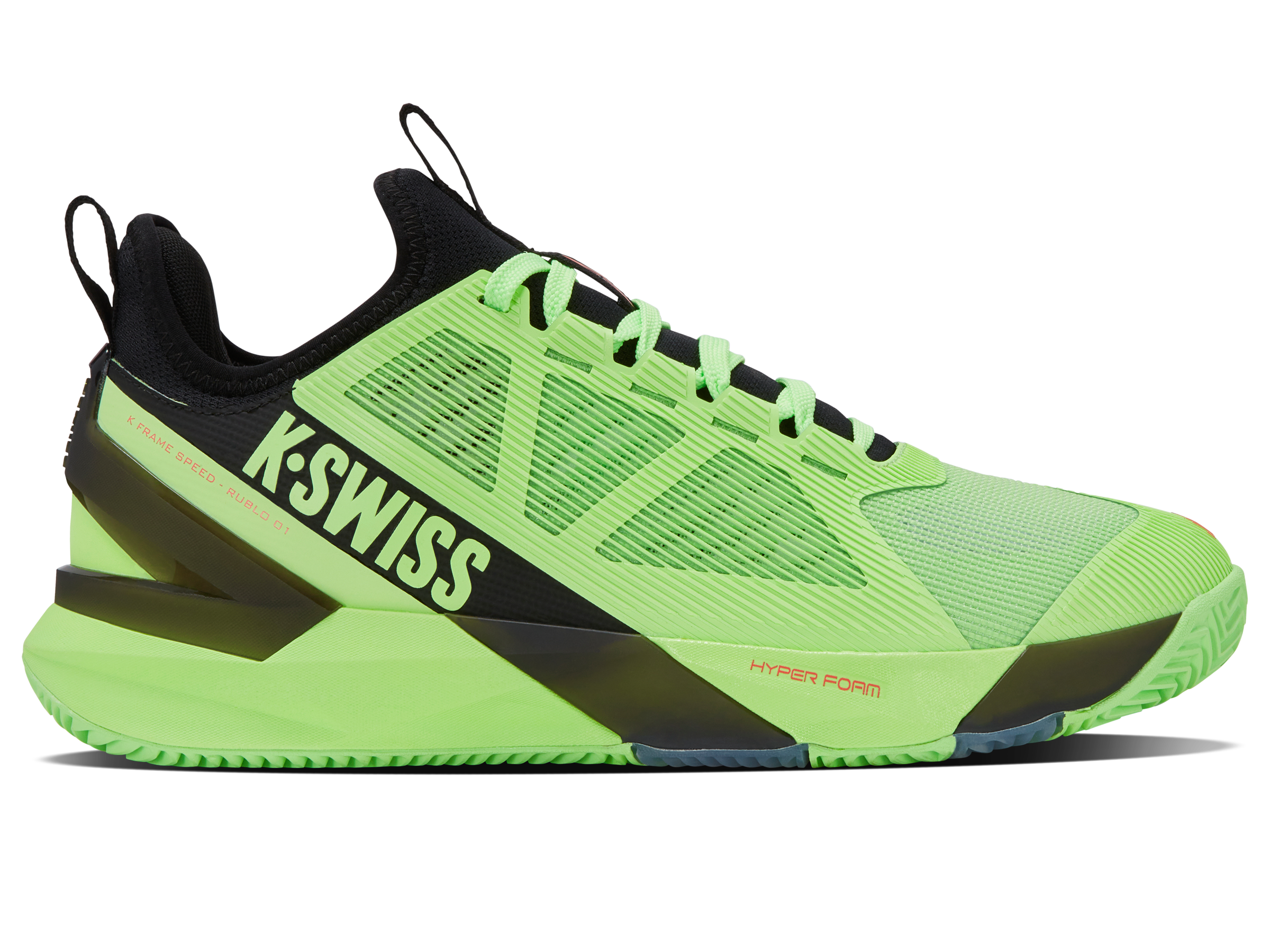 De K-Frame Speed Rublo Clay is de signature schoen, ontworpen in samenwerking met ATP-ster Andrey Rublev, voor topprestaties op gravel. Met een innovatieve TPU K-Frame-structuur onder de voorvoet biedt deze schoen uitstekende stabiliteit voor snelle en wendbare bewegingen. De tussenzool, voorzien van de nieuwe Hyper Foam, zorgt voor uitzonderlijke energieteruggave en demping. Het bovenwerk is gemaakt van lichtgewicht en ademend Duraprint-materiaal dat zowel duurzaamheid als stabiliteit verhoogt – perfect voor agressieve spelers.
