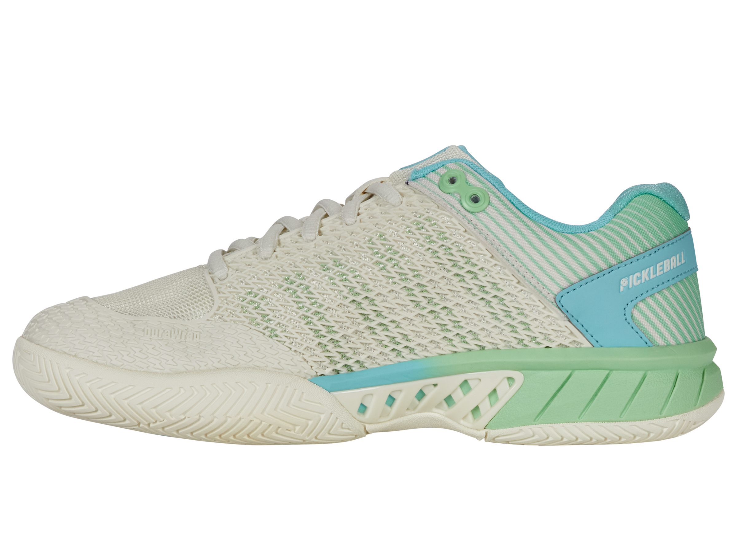 De Express Light Pickleball is ontworpen voor spelers van elk niveau met deze lichte en ademende schoen die zorgt voor optimaal comfort en wendbaarheid op de baan. Met een K-EVA-geïsoleerde tussenzool en een 180-graden plantaardige ondersteuning chassis, biedt het superieure stabiliteit en responsiviteit tijdens intensief spel. Ontwikkeld voor duurzaamheid, biedt de Aosta-rubbercompound buitenzool met DragGuard-technologie uitzonderlijke slijtvastheid. Met het iconische K-Swiss Pickleball-logo en een gepersonaliseerde Pickleball sokkeninlegzool combineert het naadloos stijl met prestaties. Verhoog je spel met de Express Light Pickleball – de ultieme keuze voor wie uitmuntendheid eist.