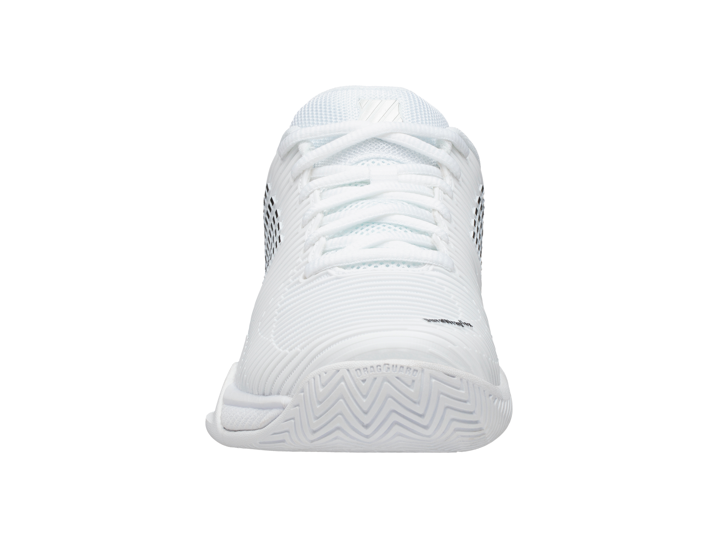 DuraWrap und DragGuard in der Laufsohle bieten eine zusätzliche Schutzschicht an wichtigen Schuhstützpunkten. Durch die markierungsfreie Laufsohle ist der Schuh für Kies, Smashcourt und Kunstrasen geeignet.