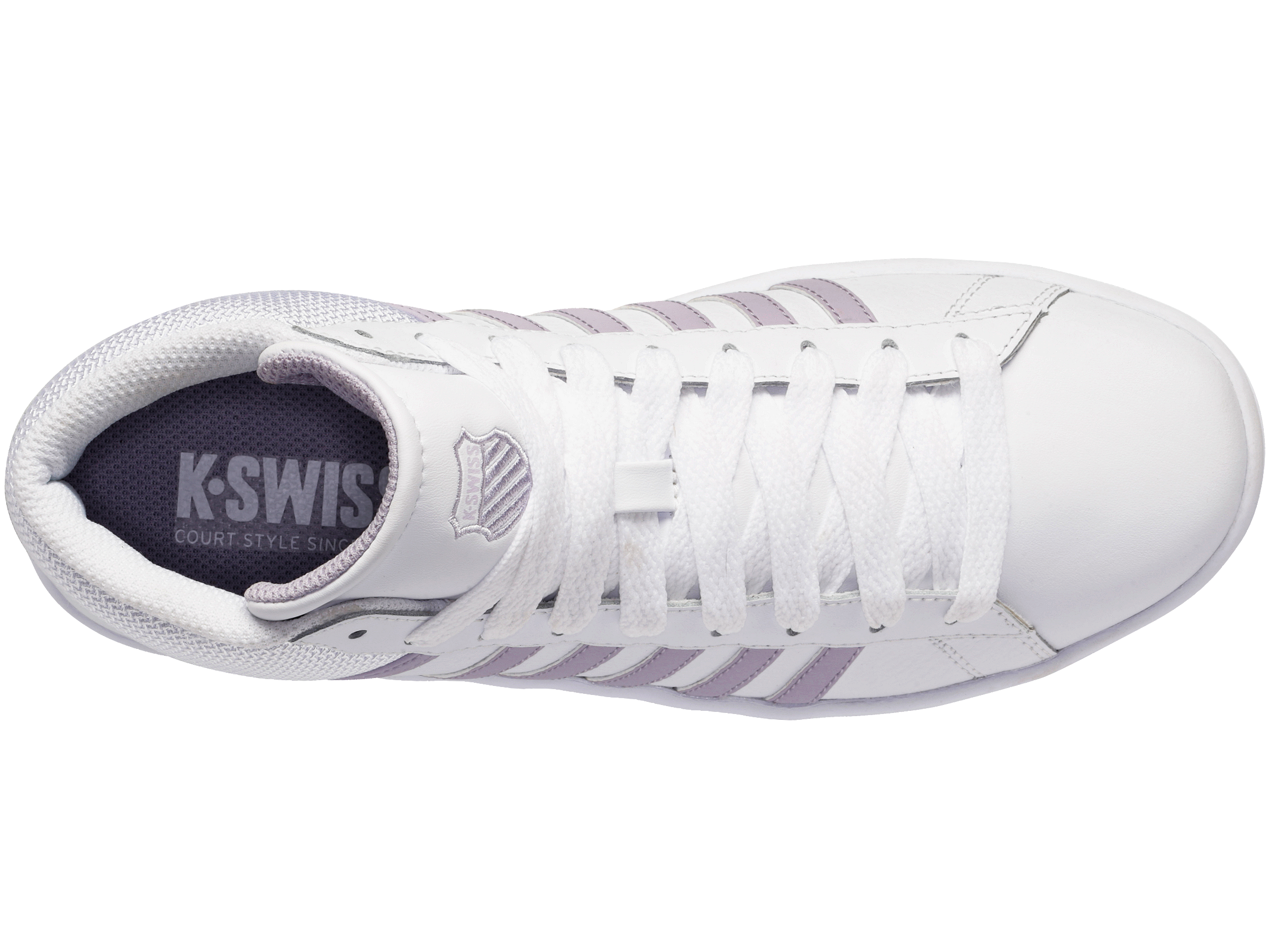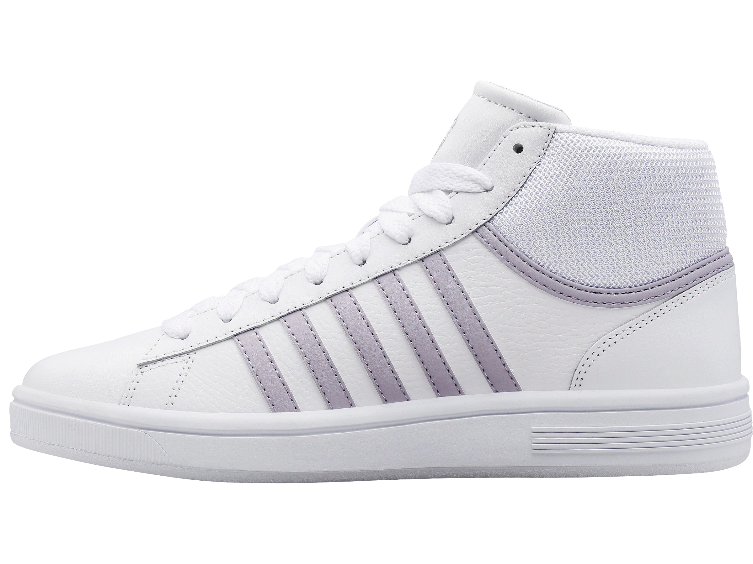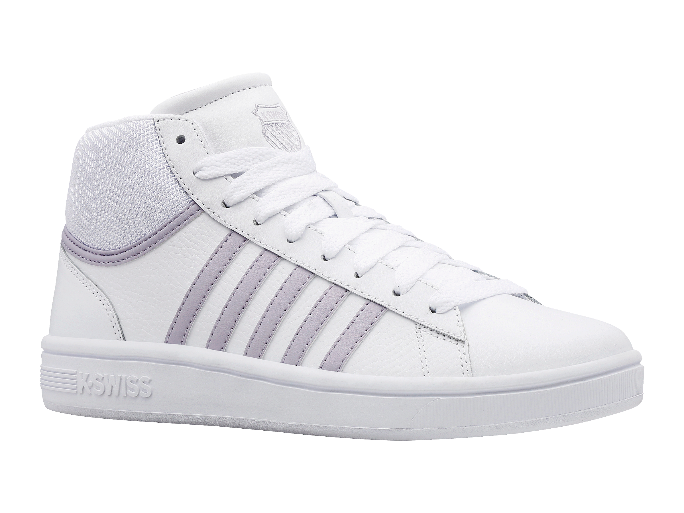 De strakke, moderne aanvulling op de legendarische lijn van K-Swiss tennissneakers in een hoog model. De Court Winston Mid is gemaakt van glad leer en heeft een traditionele gladde neus voor een nette versie van de traditionele look. Met een mesh voering en een nieuwe verdikte instap voor meer ademend vermogen en comfort. Leren overlays vormen de kenmerkende vijf strepen van K-Swiss, die perfect passen bij het geborduurde schildlogo op de tong. De Court Winston Mid biedt een tijdloze stijl en een dynamische look.