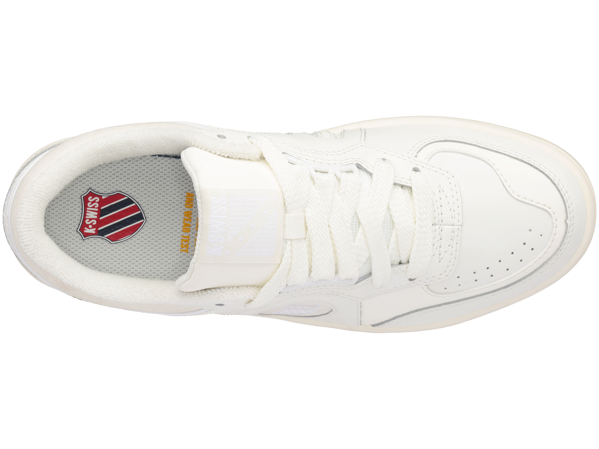 De North Court vormt de neerslag van tientallen jaren tenniservaring en is de perfecte retro-sportschoen voor elke gelegenheid. Hij leent inspiratie en details uit de verschillende tijdperken van de klassieke K-Swiss en maakt gebruik van gelaagde materiaalpanelen voor een uniek, asymmetrisch bovendeel dat op en top vintage oogt. Een gewatteerde instap en biezen in het middenstuk geven de buitenkant extra kleur. De mesh tong, het geweven tonglabel en de binnenkant van badstof zijn een ode aan het tennisverleden. De North Court is geconstrueerd op een strak en klassiek vormgegeven rubberen cupzool die de hele dag comfortabel is, in elke omgeving.