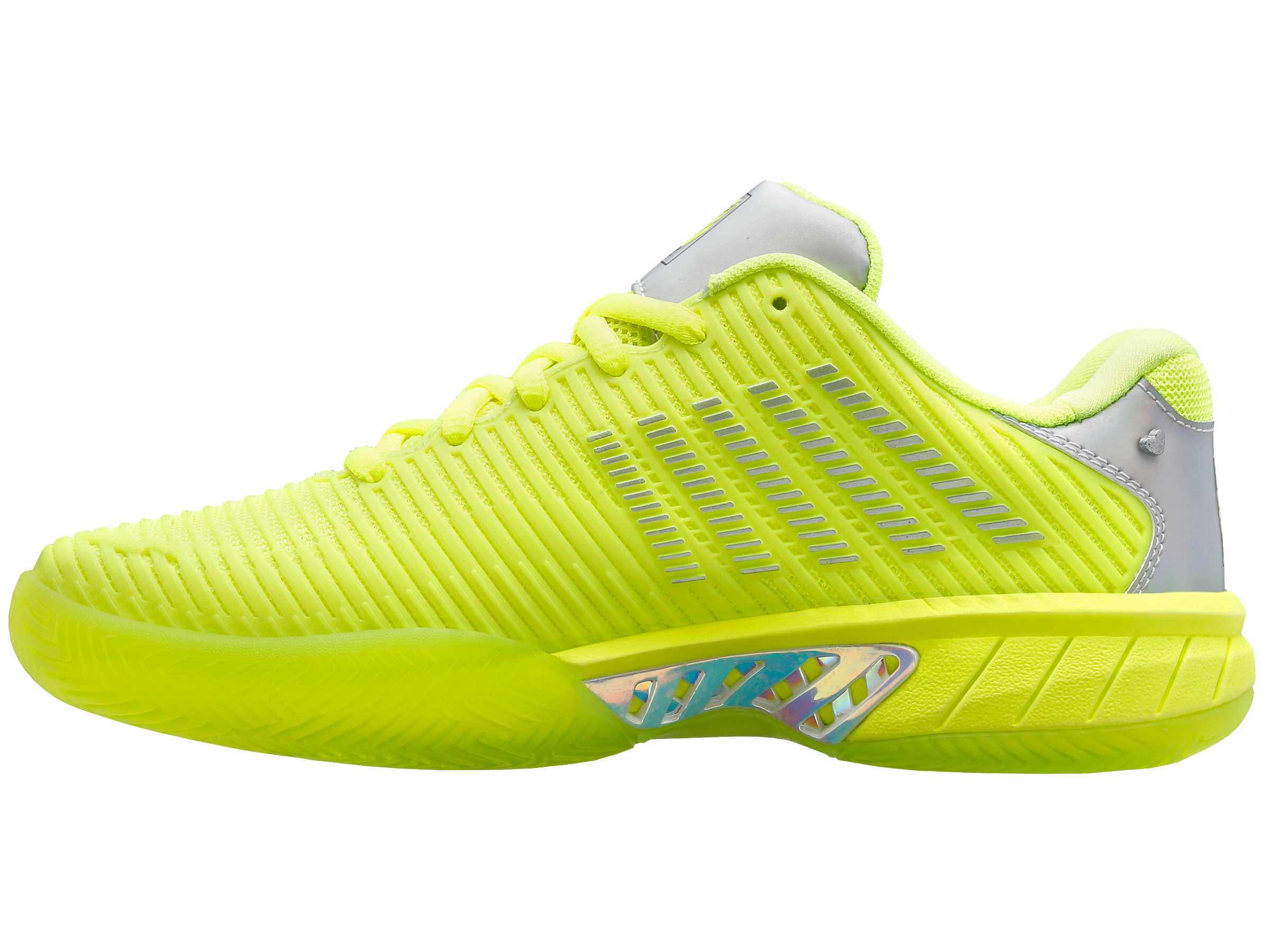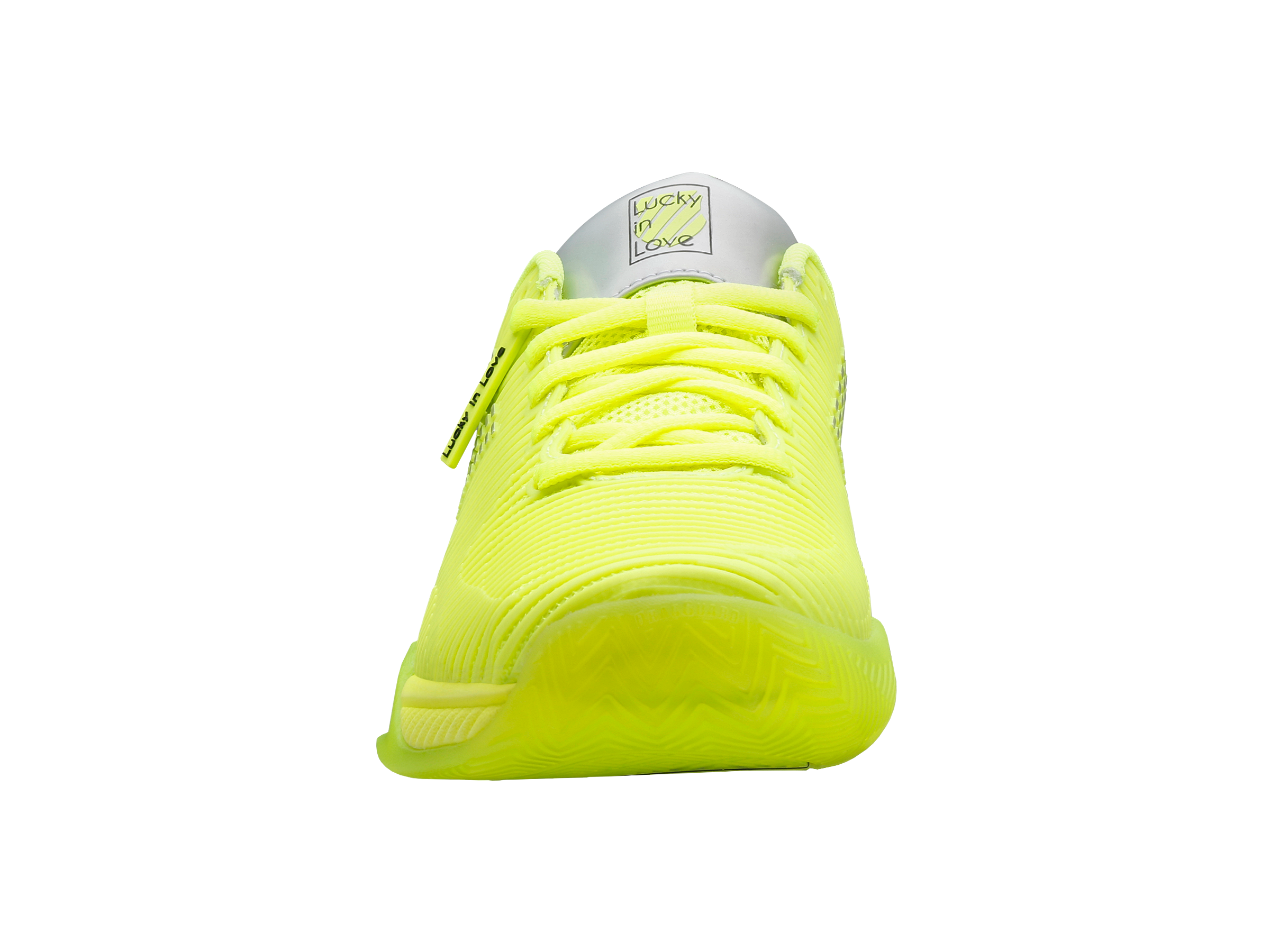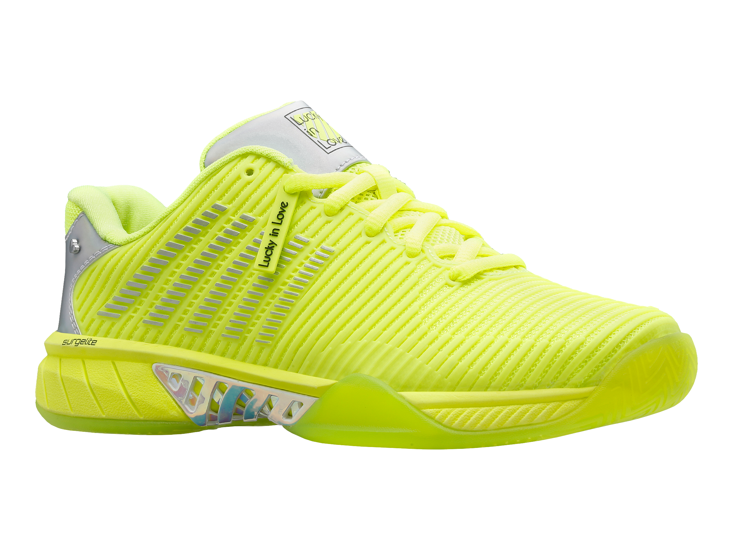Leading tennis footwear and apparel brands K-Swiss and Lucky In Love make history by collaborating together on a limited edition product collection. K-Swiss used the tennis industry’s best-selling footwear model, Hypercourt Express 2, and worked with Lucky In Love founder Brad Singer and his design team to create a shoe. The Hypercourt Express 2 x Lucky in Love shoe has features not available on any other current K-Swiss footwear model, including collaboration logos, iridescent heel and shank, as well as a translucent outsole.