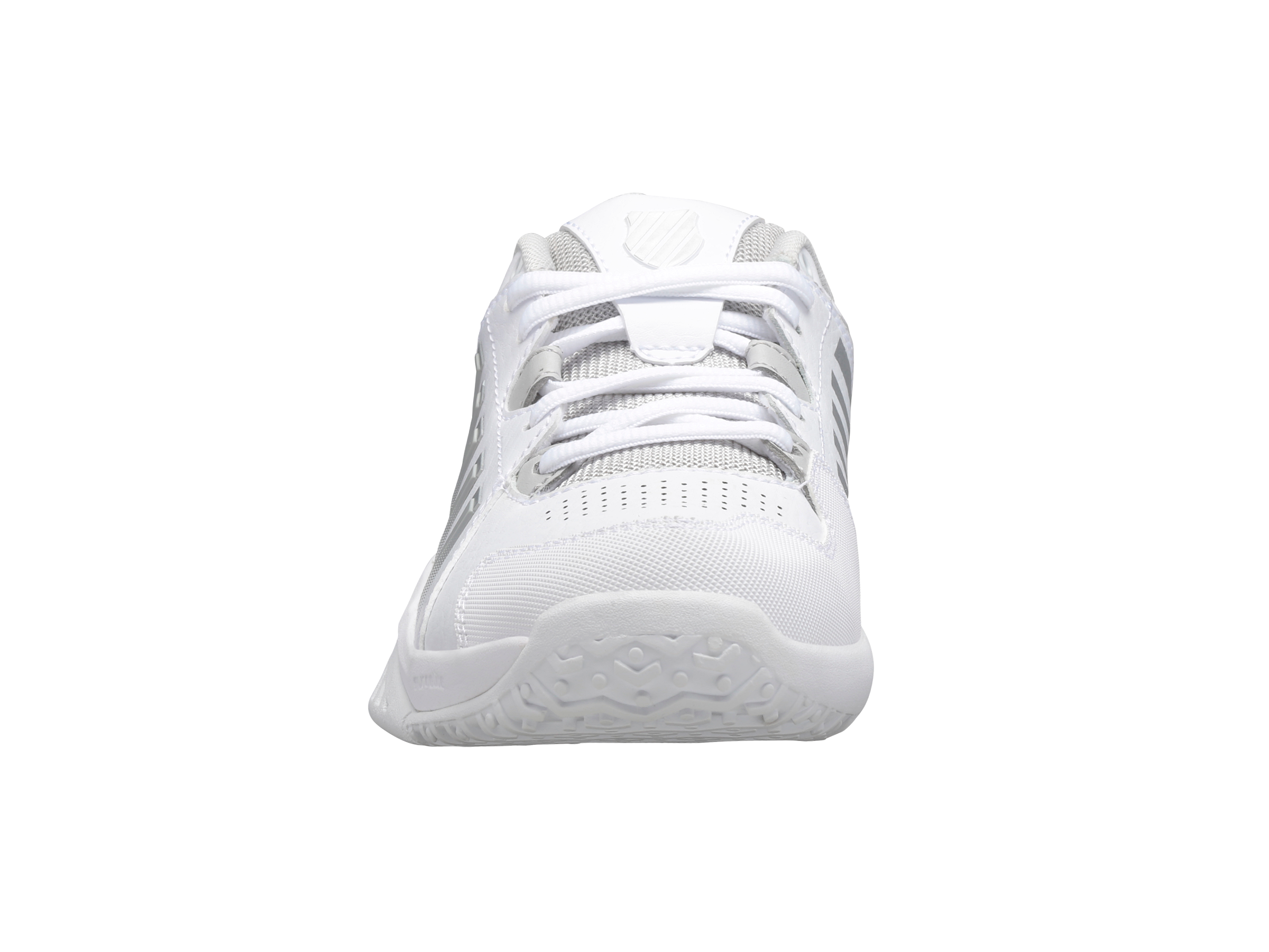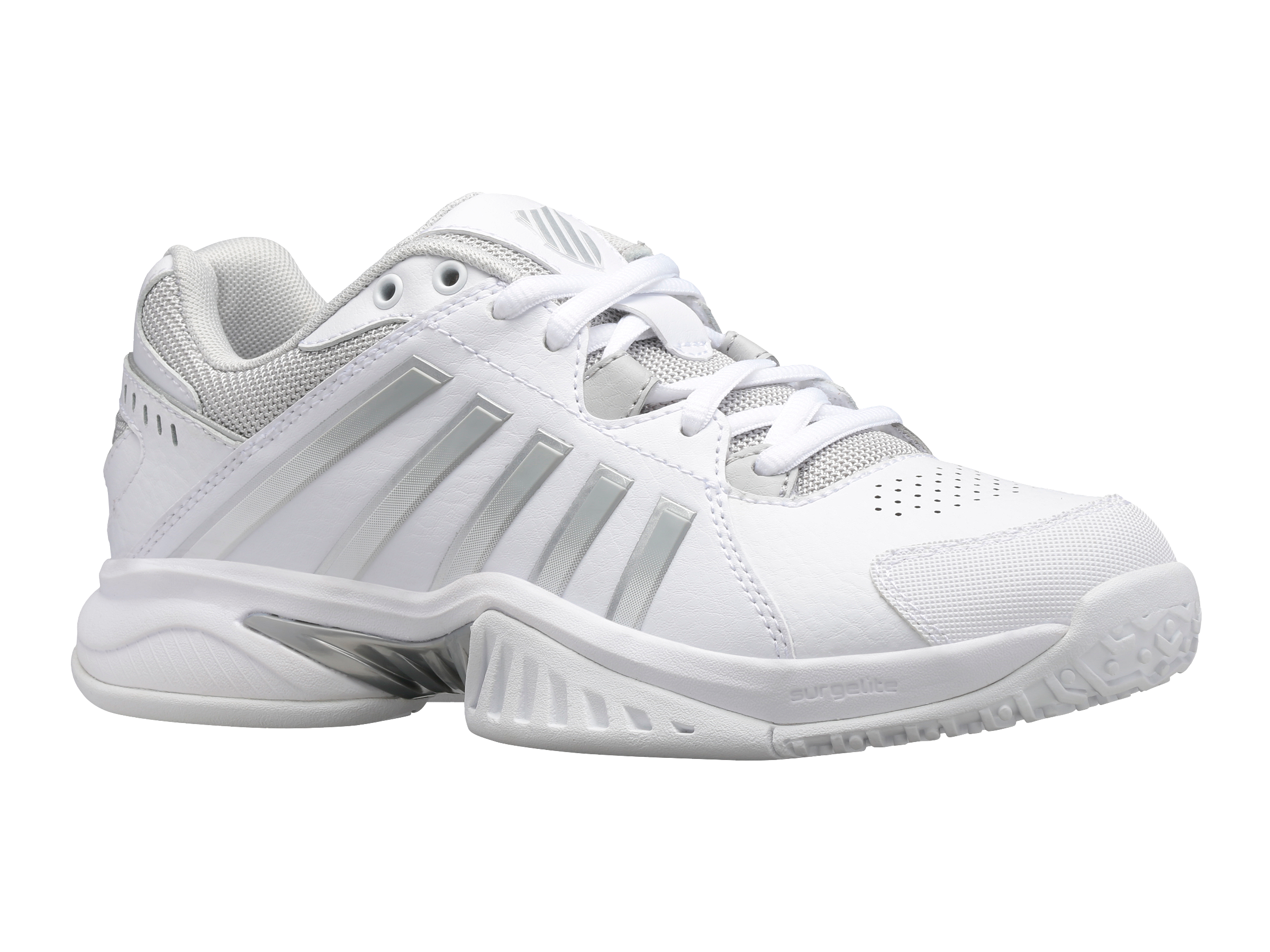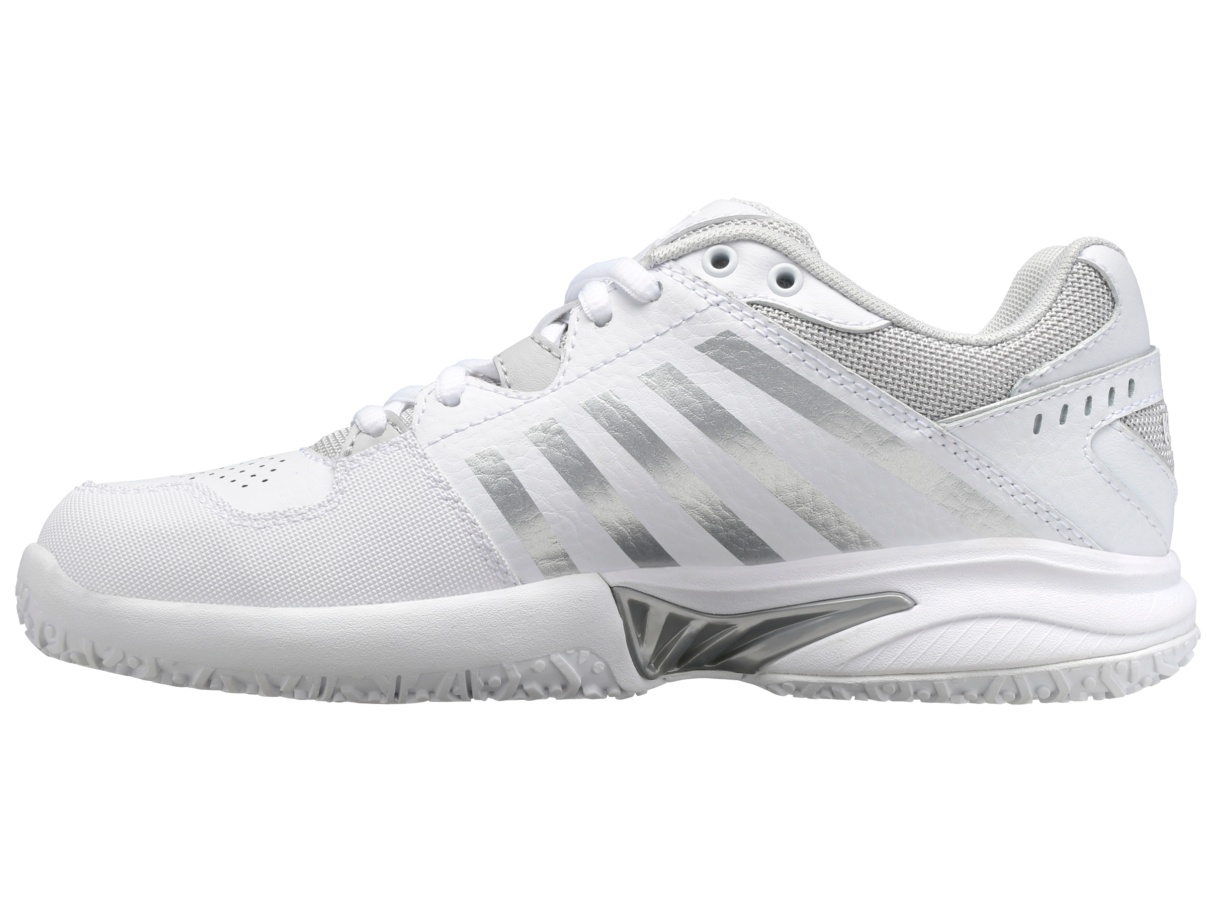 Gericht op de speler die zijn prestaties wil optimaliseren zonder zich blauw te betalen. Agressieve stijl gecombineerd met Aosta II rubbersamenstelling zorgt ervoor dat het contact van de voeten met de court volledig beantwoordt aan uw verwachtingen van K-Swiss. Superfoam onder de hiel betekent een ruime schokdemping tijdens lange wedstrijden en de ondersteunende middenvoetschacht zorgt voor de stabiliteit die je nodig hebt om je voort te stuwen naar de volgende slag.
