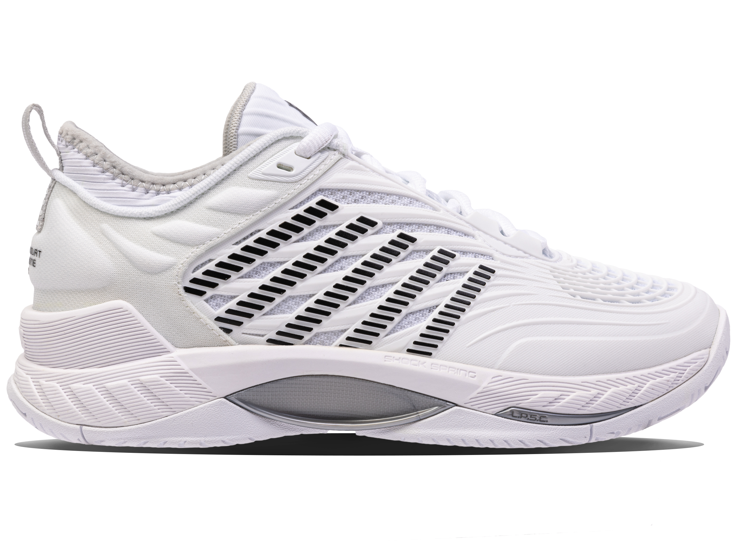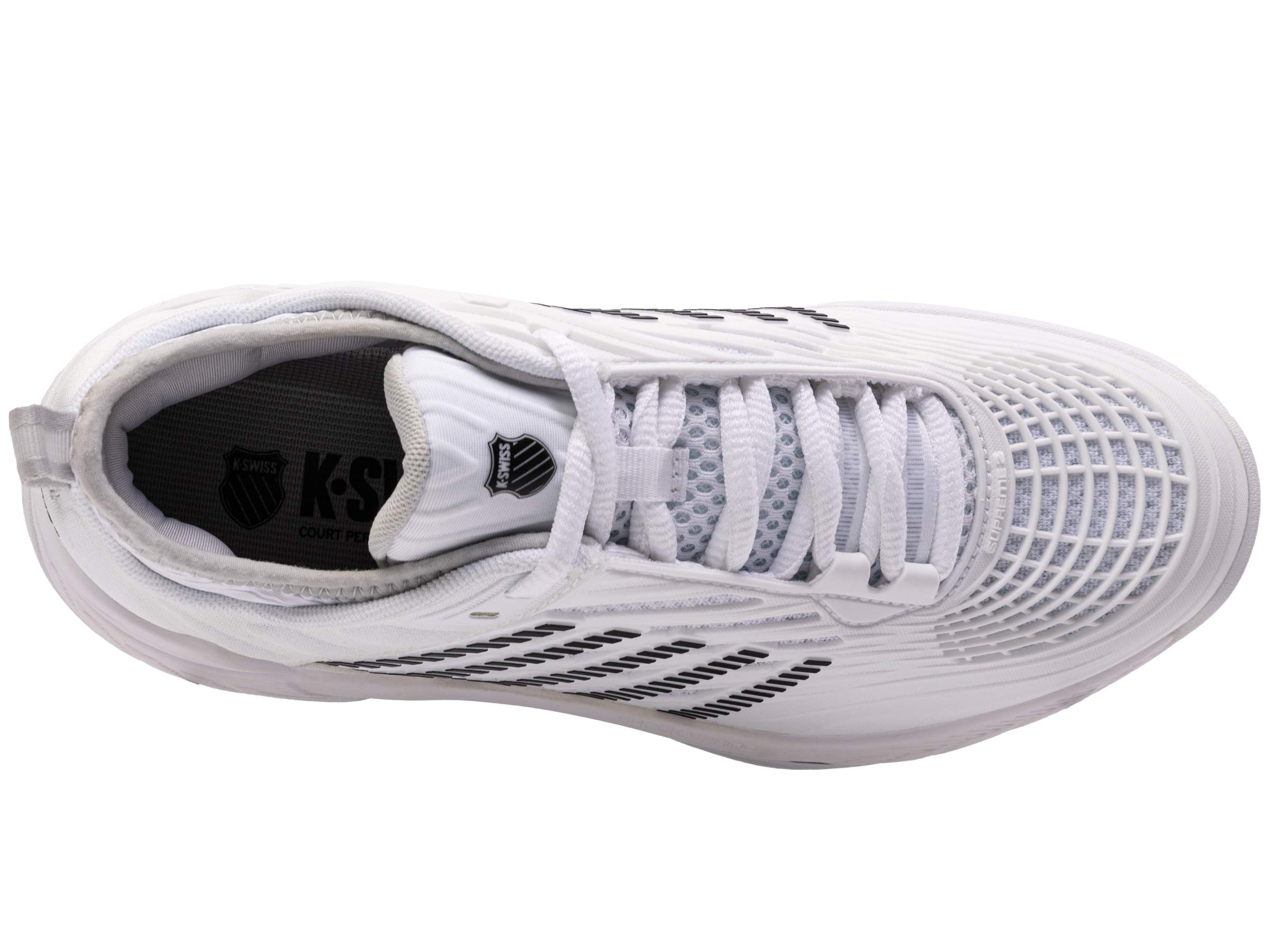 De K-Swiss Hypercourt Supreme 2 is het topmodel binnen de Hyper-familie. Dit jaar introduceren we een nieuwe versie met een betere pasvorm, extra ondersteuning en meer duurzaamheid en optimaal comfort. Het bovenwerk is gemaakt van Durawrap X voor uitstekende ondersteuning en bescherming tegen slijtage met behoud van flexibiliteit terwijl je je over de baan verplaatst. De tussenzool met dubbele dichtheid heeft een extern, lichtgewicht Surgelite-schuim voor maximaal comfort en ondersteuning. Het hoge rebound Shock Spring-binnenschuim op de voorvoet zorgt voor een snellere reactie bij elke stap. De Dragguard 7.0 rubberen buitenzool heeft een aangepast visgraatprofiel voor extra grip en duurzaamheid op alle soorten banen. De nieuw ontworpen, zachte kraag zorgt voor een betere pasvorm rond de enkel.